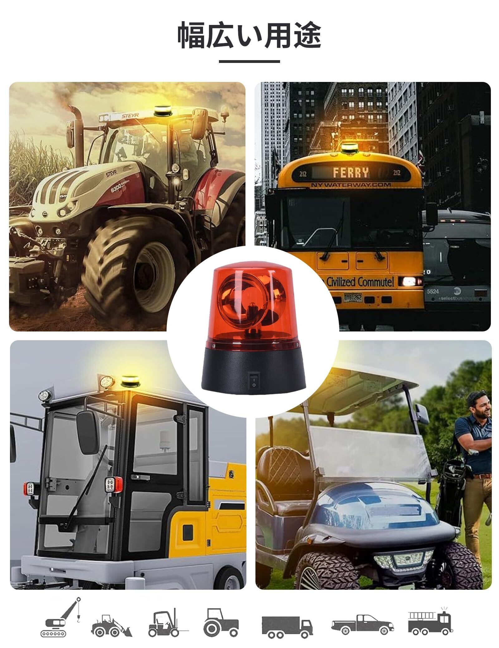 【幅広い用途】事故や衝突を避けるための警告灯として、イベントやパーティーの照明、農業車両、建設車両、緊急車両など。目を引くので、安全警告灯として最適です。