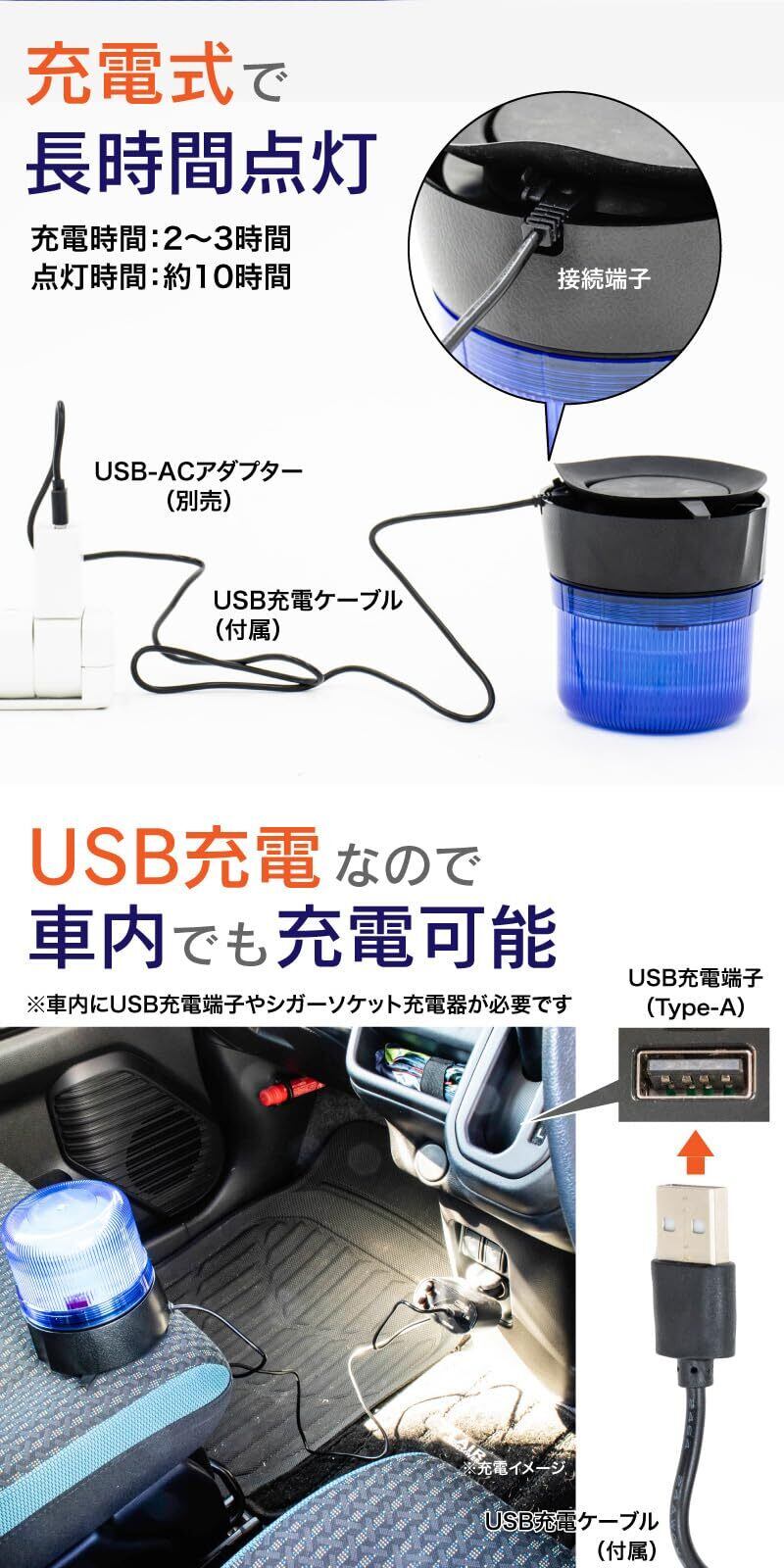 FUNKS 回転灯 充電式 マグネット 防水 青 青色 ブルー LED 青パト 車載可