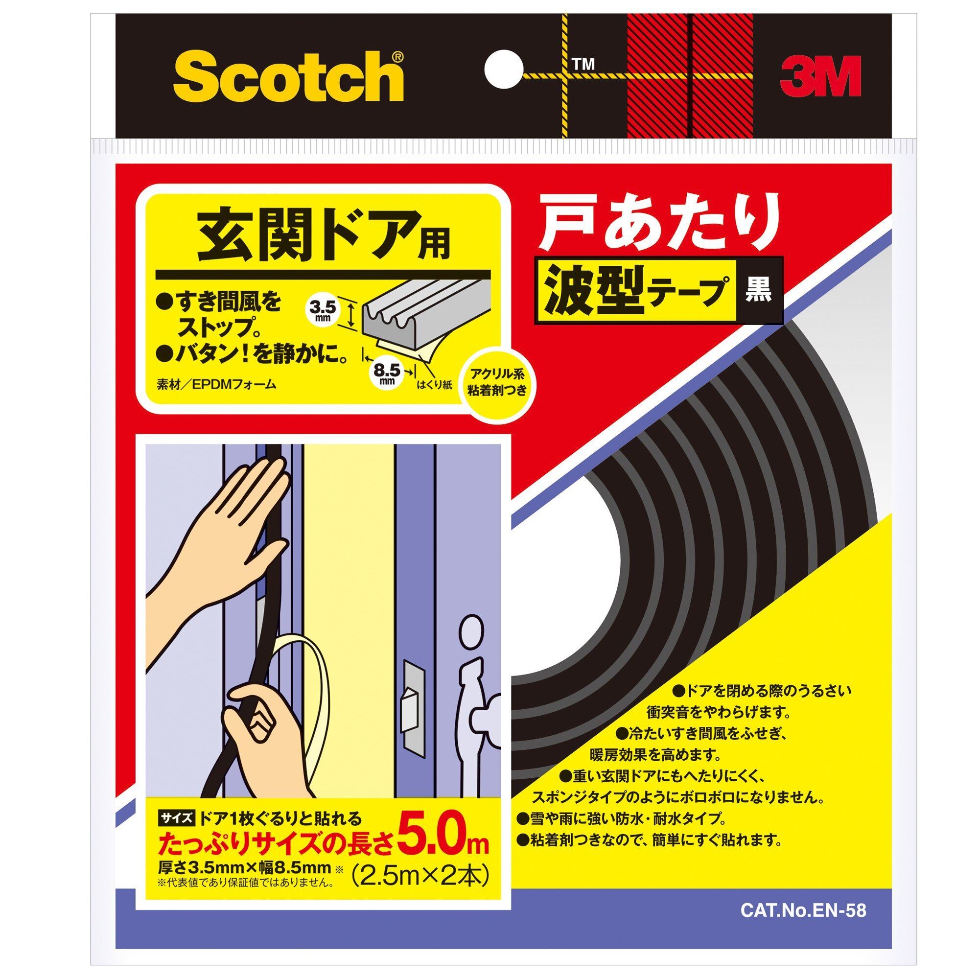 スリーエム(3M) スコッチ 玄関ドア戸あたり波型テープ2本 黒 厚さ3.5mm×幅8.5mm 長さ5.0m EN-58
