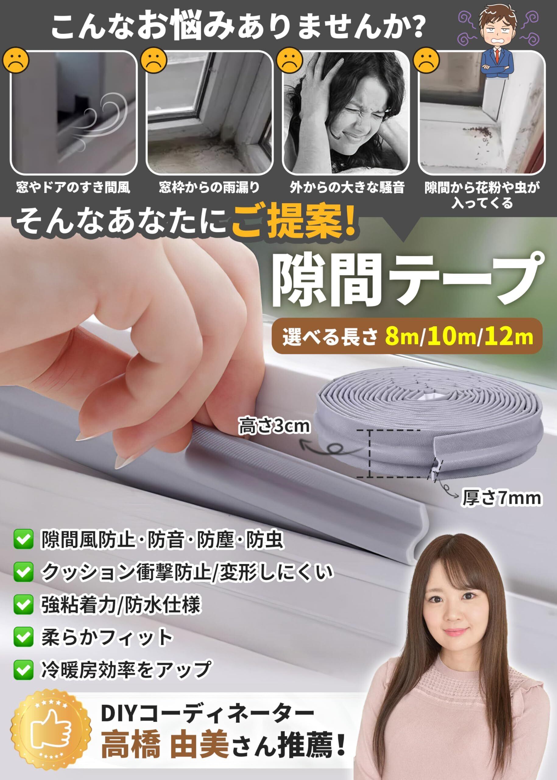 【耐摩耗性ナイロン素材使用!高耐久・変形しにくい】 高品質な隙間テープ登場!従来のゴム製隙間パッキングとは異なり、メッシュ裏地の粘着剤が2kgまでの荷重に耐えます。素材:ポリウレタン(伸縮発砲綿)、耐摩耗性ナイロン、エコなグリッド接着剤。変形しにくい耐摩耗性ナイロン素材を使用し、クッション性もあるので耐久性抜群。強力な粘着テープ付きで、柔らかい素材だからさまざまな製品に貼り付けやすいです。十字窓や片開き戸など、さまざまなタイプの窓や戸にご使用いただけます。サイズ:厚さ7mm×高さ3cm×[選べる長さ8m/10m/12m]