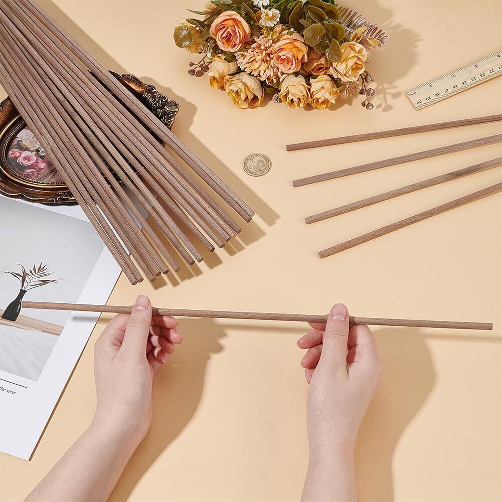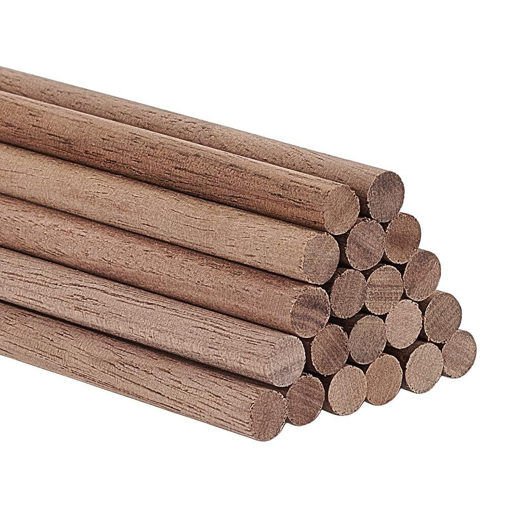 BENECREAT 20本セット 丸棒材 長さ40cm 直径6mm 木製のダボロッド 木製スティック 木の棒 ウォールナット 木材 クラフトスティック ホビー用 DIY 手作り 工芸アクセサリー モデル作り