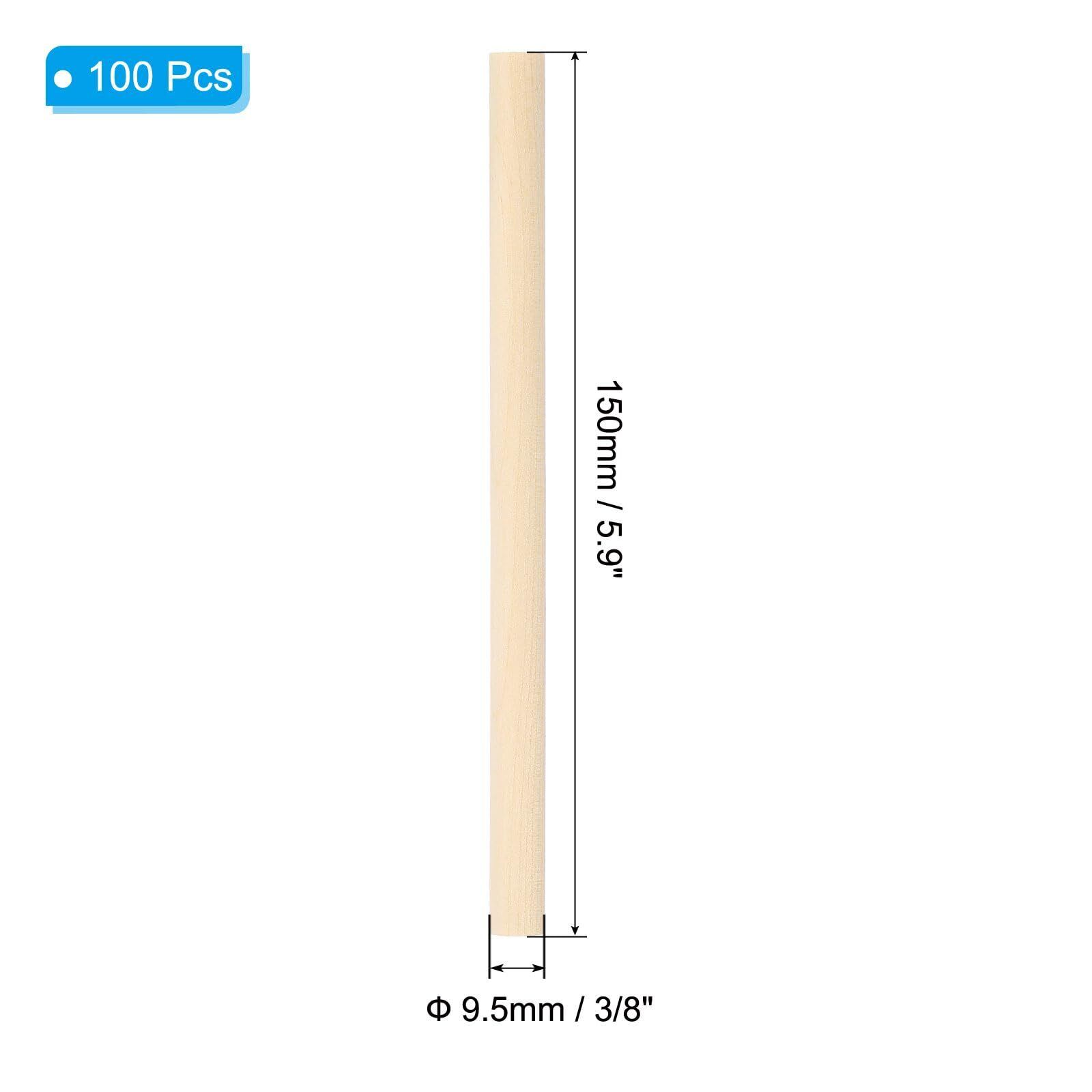 PATIKIL 9.5 mm x 15 cm ダボ棒 木の棒 100個 未完成の木製ダボロッド 丸型ダボ ハードウッドスティック DIY クラフト ホームデコレーション用
