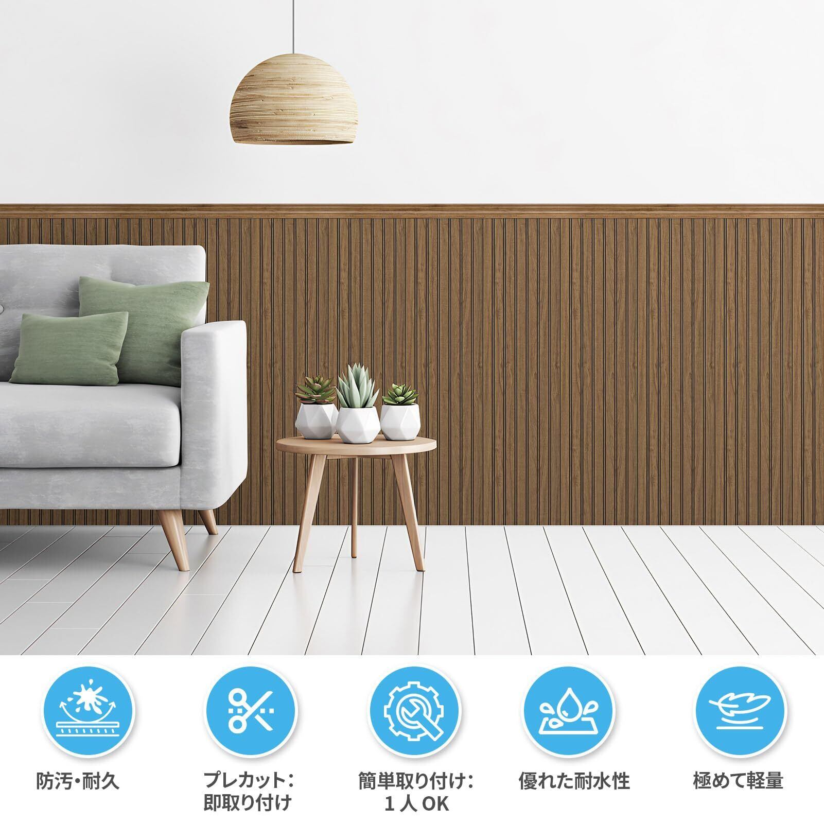 セット構成の充実さ - Art3d 腰板パネル 12 枚(96cm×25cm×0.6cm / 枚)と見切り材 4 本をセット提供,約 2.3㎡の施工面積に対応。基本部材が一式そろっているため、DIY 装飾やプロ施工にかかわらず、別途部品を購入する手間を省き、すぐに作業を開始できる