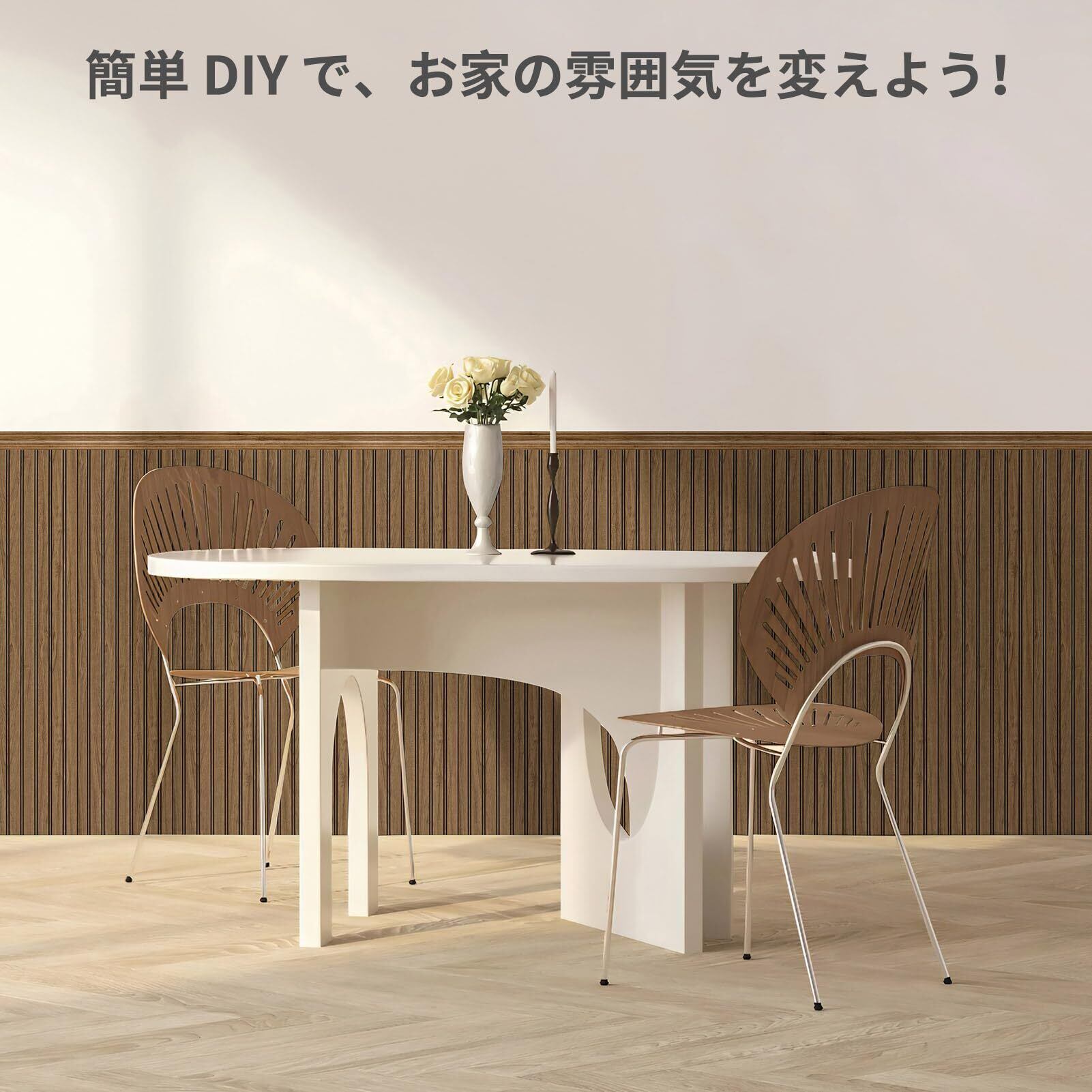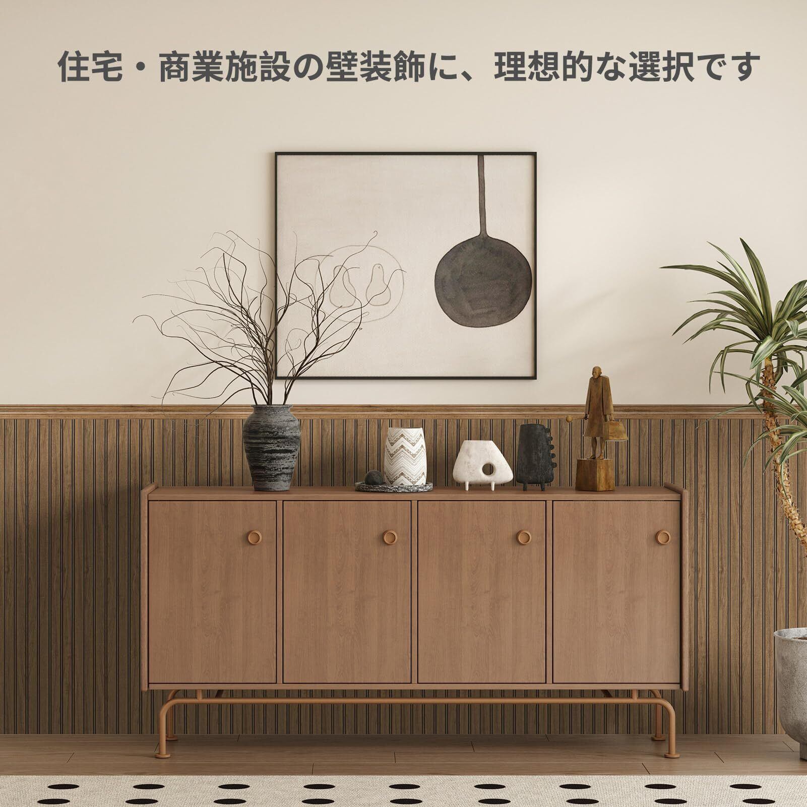多様な空間演出対応 - 室内の腰壁装飾はもちろん,壁面全体の羽目板仕上げや天井の縁取りにも活用可,リビング・玄関・寝室・キッチンなどの場所に応じて,モダン~和風まで多様なインテリアスタイルに柔軟に融合