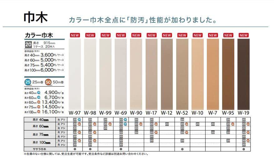 サンゲツ W-97 カラー巾木(ソフト巾木)ホワイト 高さ60㎜長さ915㎜ Rアリ1箱20枚入り約18.3m分