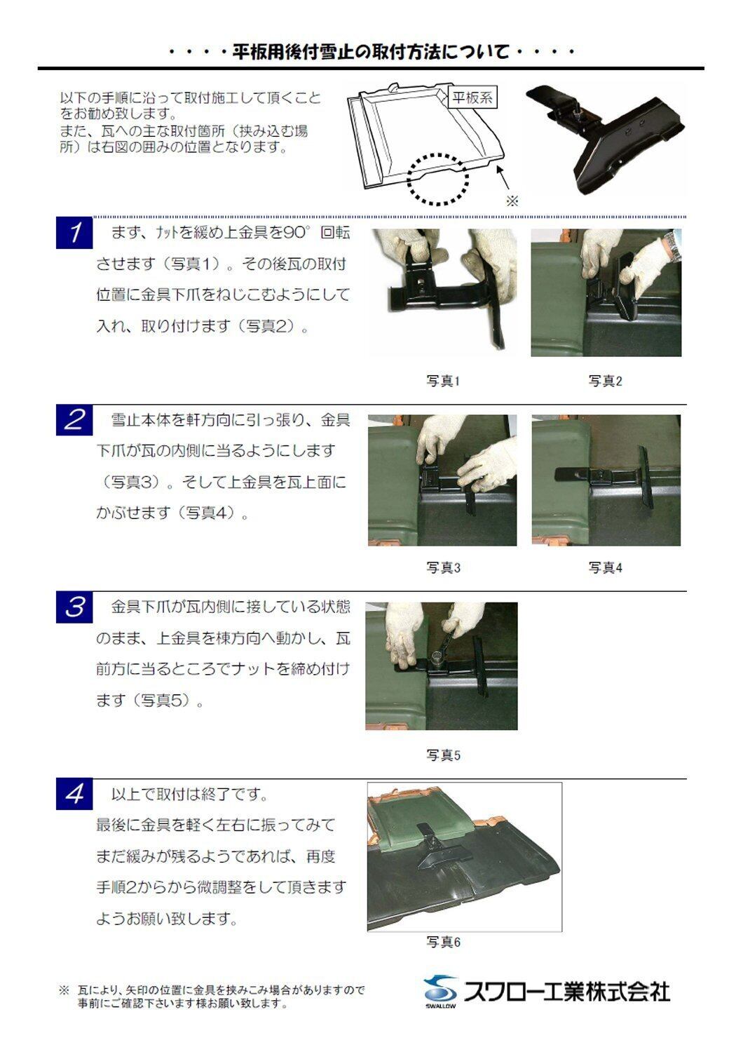 雪止 金具 スワロー工業 平板瓦用 後付 16型 羽根 180mm ブラック SUS430 30入