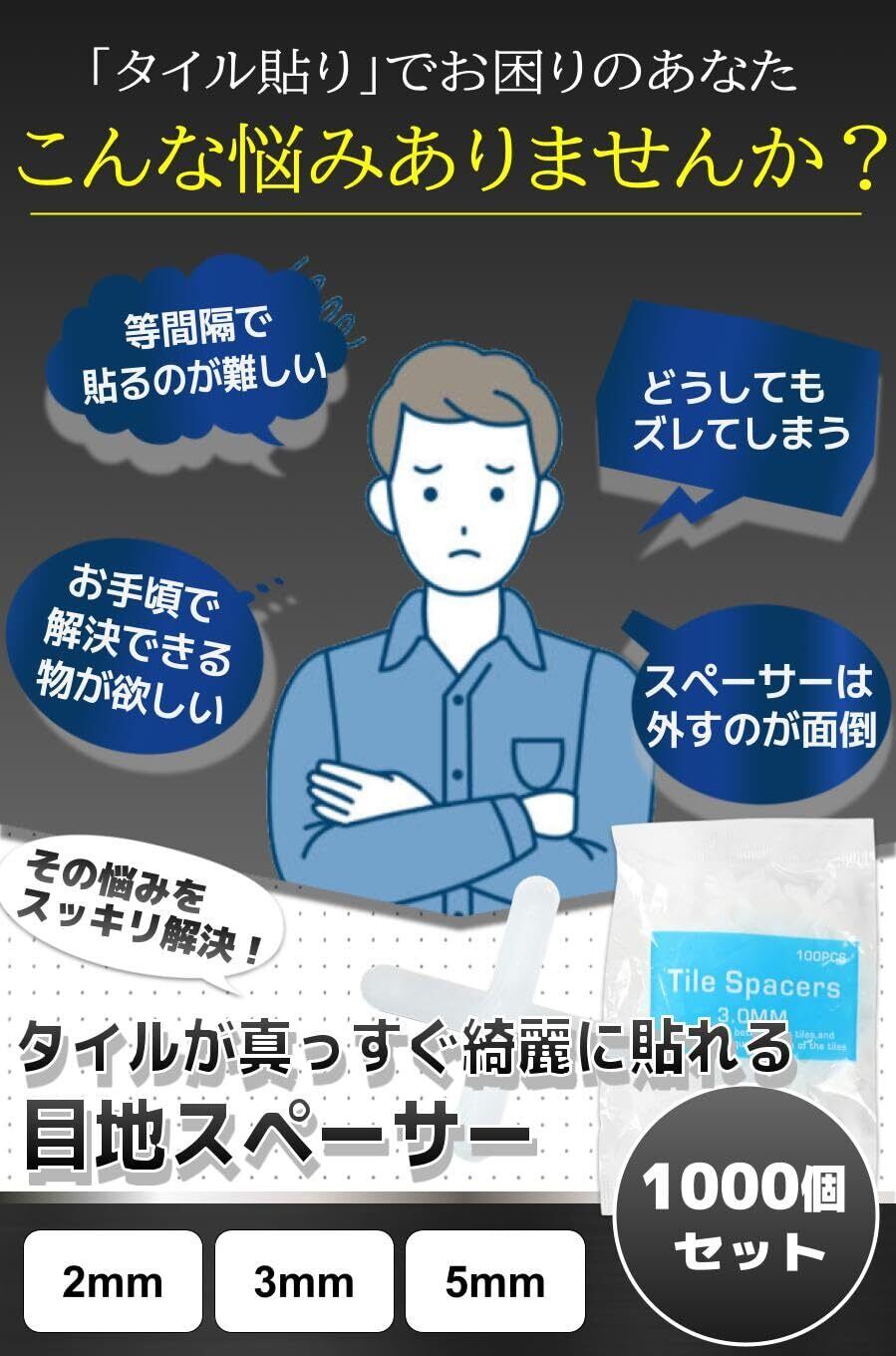 【限定セール】fogman タイル スペーサー 間隔調整 十字 目地 個包装 2mm 3mm 5mm 1000個セット (3mm)