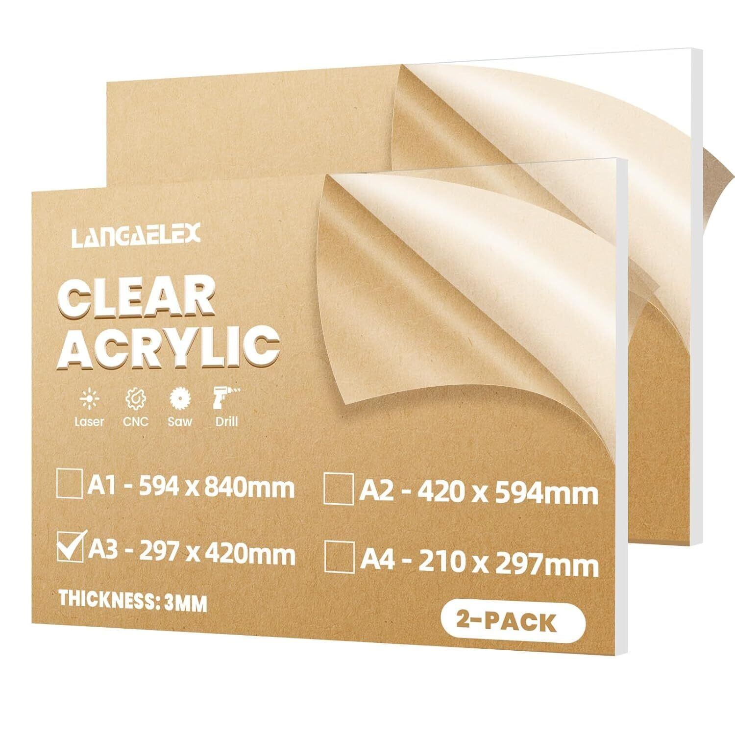 クリア鋳造アクリル板 2枚組 A3サイズ(297×420mm) 3mm厚 ペルスペックスシート レーザーカット対応・看板用・ガラス代替 DIY・クラフトプロジェクト用 高透明