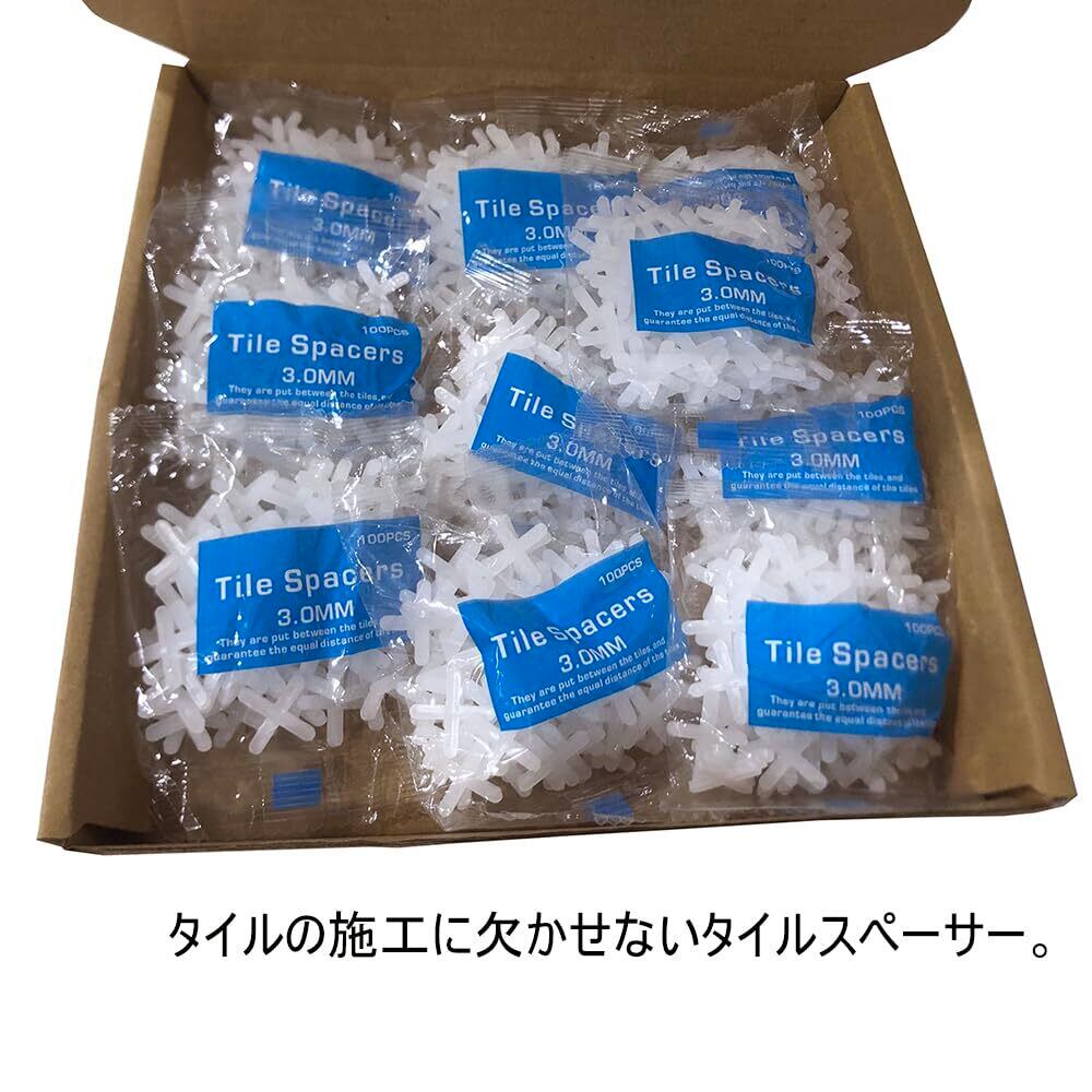 タイルスペーサー 十字 10パック1000個入り 間隔調整 タイル施工用 目的 プラスチック製 3mm/5mm タイルギャップ 個包装 ホワイト (白3mm)