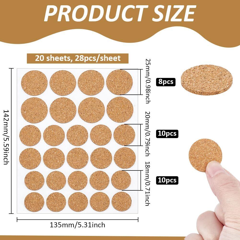 【数量限定】BENECREAT 20シート560枚 粘着コルクパッド 18mm/20mm/25mm 2mm厚さ 自己粘着 コルクマット 椅子マット 滑り止め家具保護材 家具パッド 傷防止