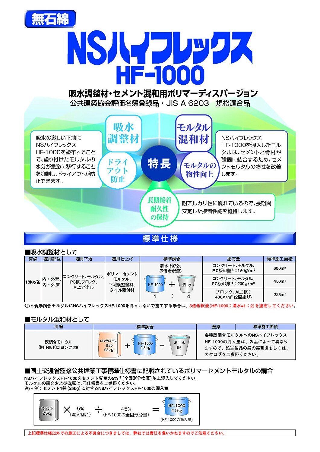 【2025最新】BIHPJD 日本化成 NSハイフレックス HF-1000 1L(リットル)小分け クリア プライマーモルタル接着増強剤