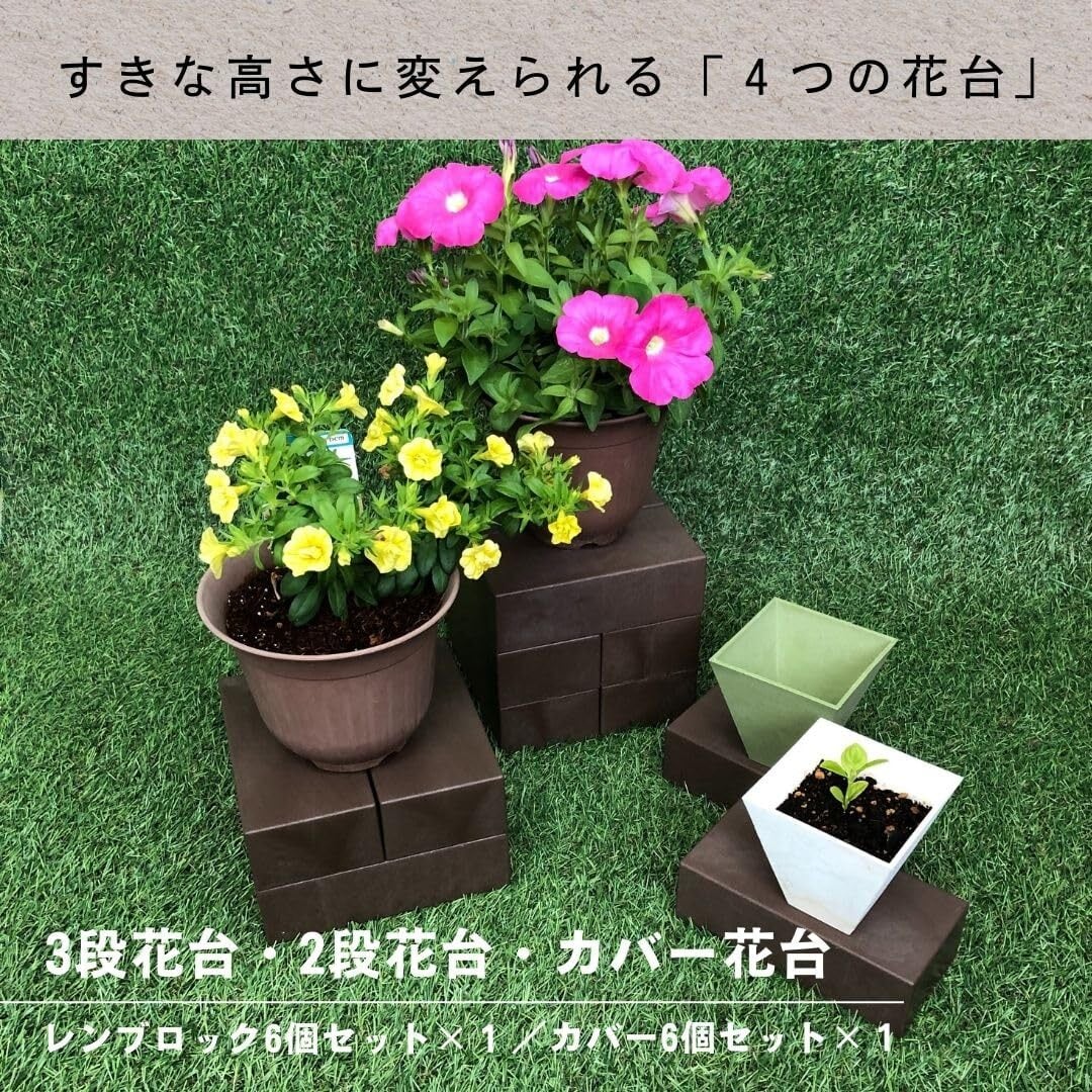 【在庫限り】YPC 日本製 レンガ ブロック 花壇 ガーデニング 園芸 屋外 ベランダ エクステリア レンブロック ガーデン 6個セット レンガタイプ カーキ