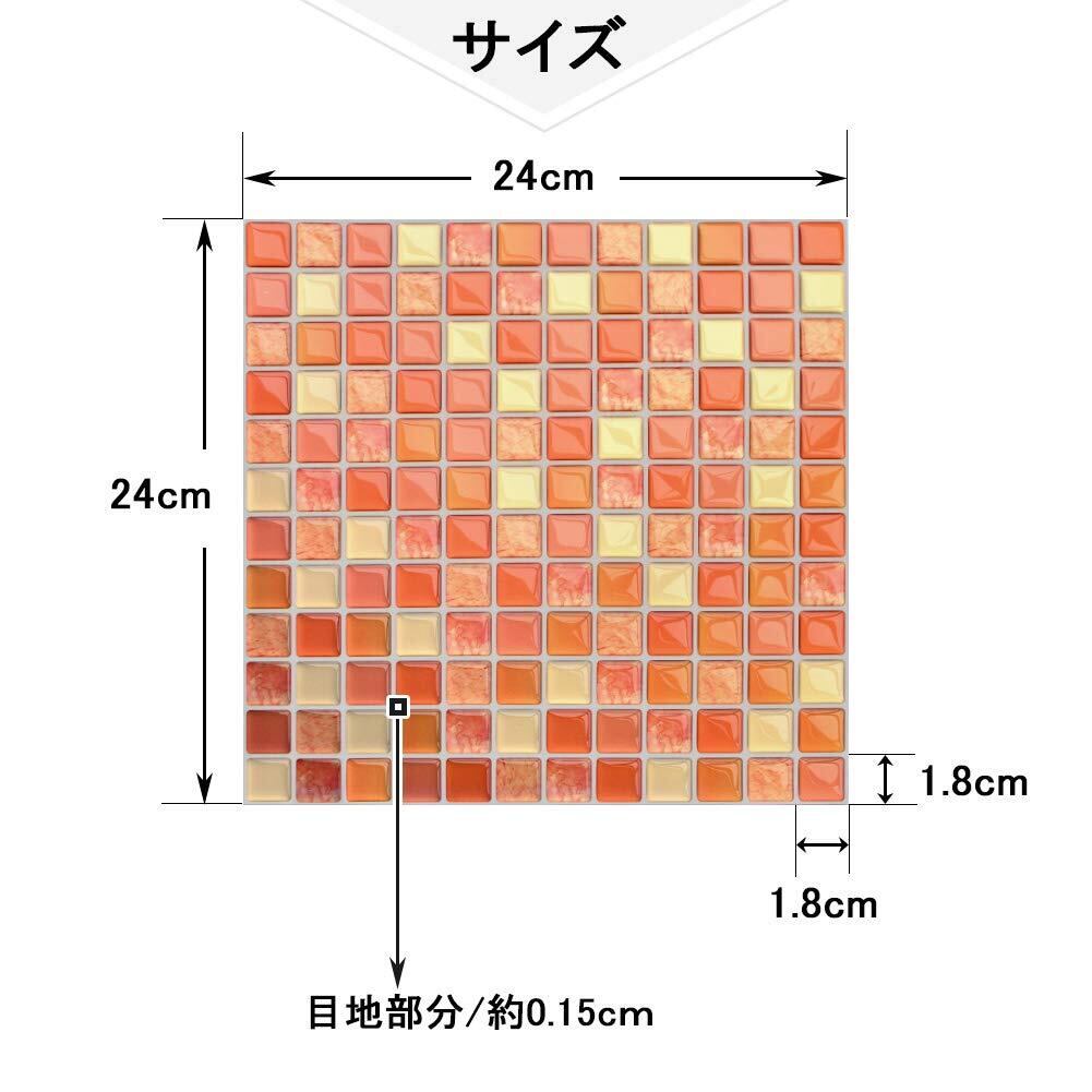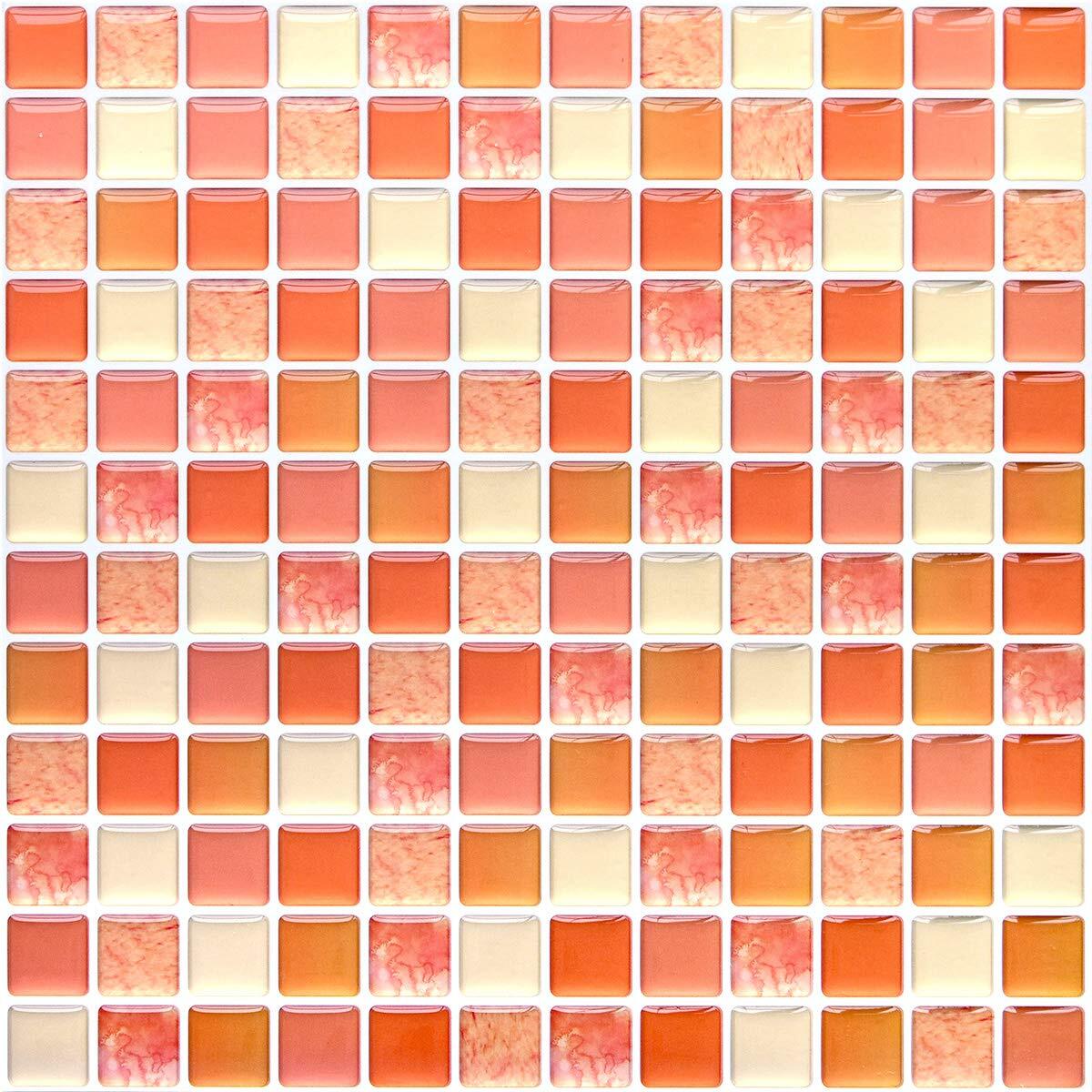 VANCORE モザイク タイルシール 【4枚】 剥がせる壁紙 キッチンリメイク タイルステッカー 超簡単リフォーム 洗面所 防水DIY オレンジ