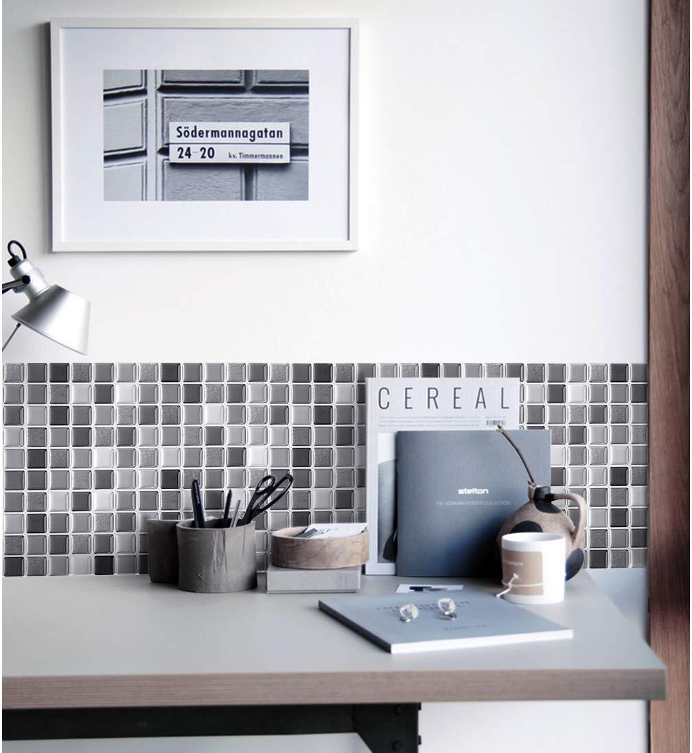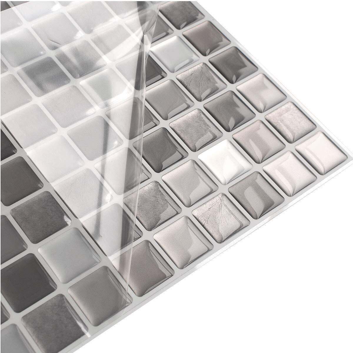 VANCORE 【4枚】 モザイクタイルシール キッチン リメイクシート タイルステッカー リフォーム 3D防水 はがせる壁紙 グレー