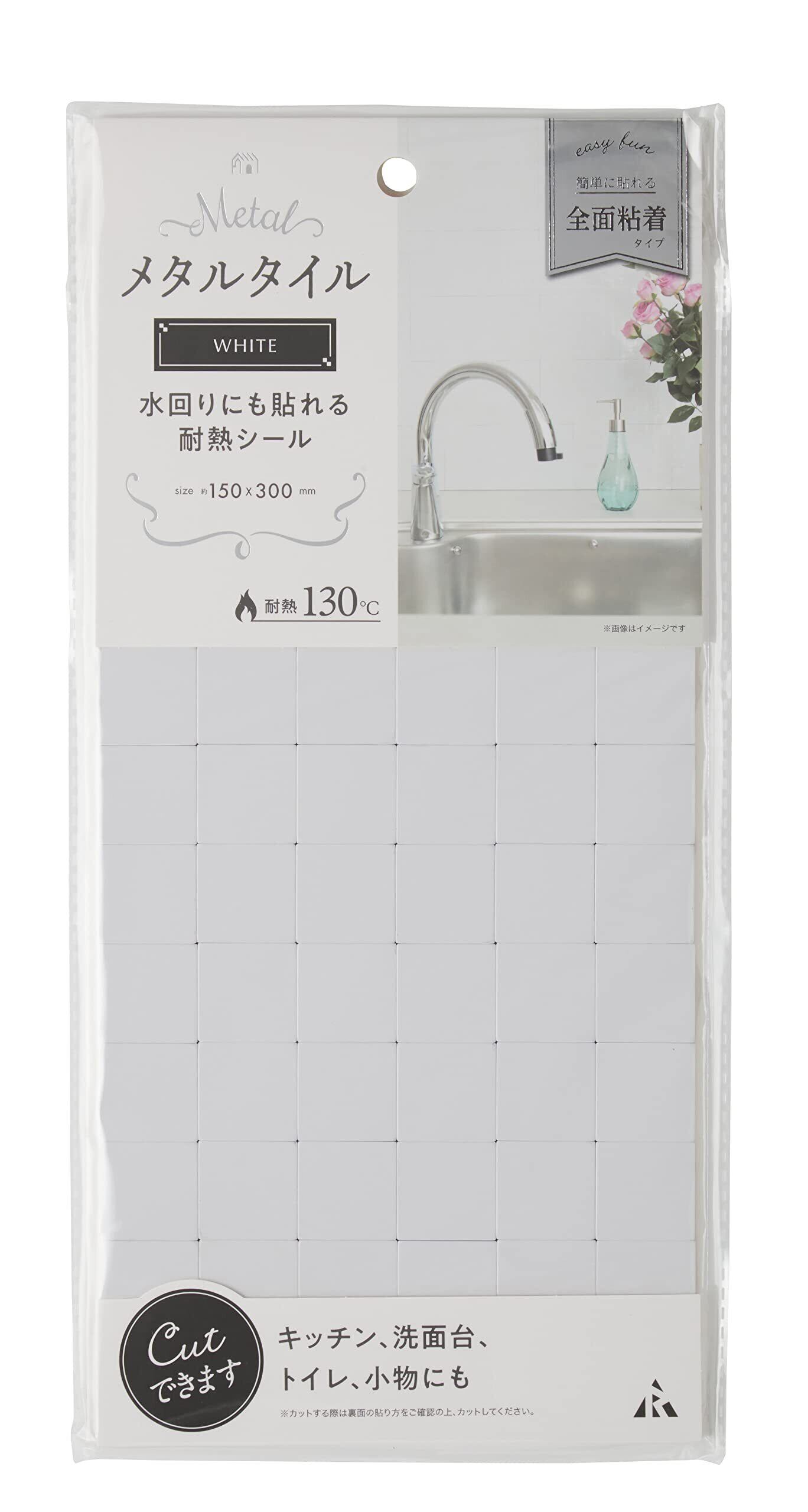 【2025最新】アール(R) メタルタイル +it+id ホワイト白 15×30×0.4(cm) ステンレス風タイル 耐熱温度130℃ AT-009