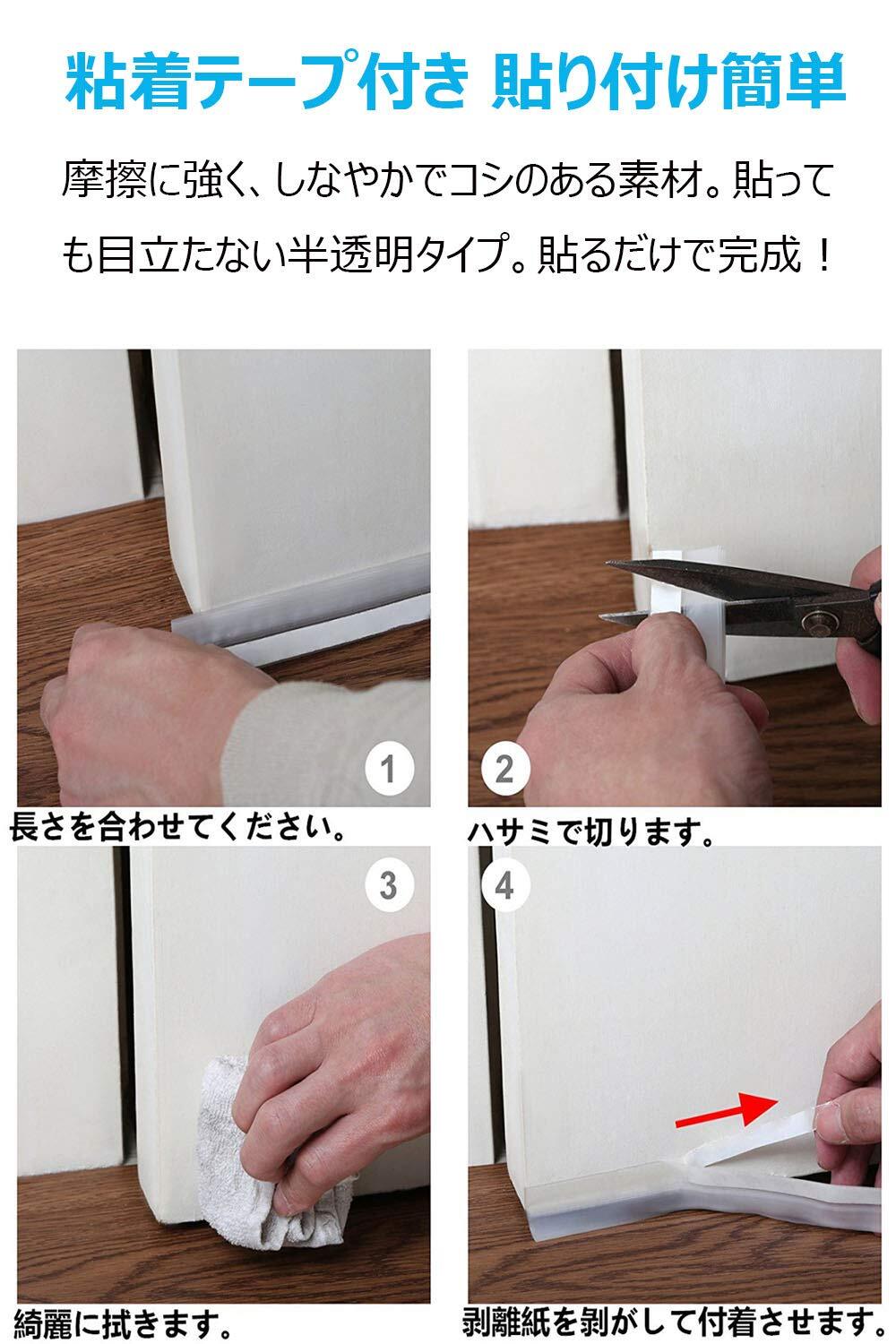 すき間風防止テープ ドア下部シールテープ 冷暖房効率アップ 省エネ 騒音軽減 ホコリ侵入防止 隙間目隠 夏涼しく 冬暖かく 両面テープ式 自動ドア サッシ 扉の隙間 窓枠 シール (半透明 8m)