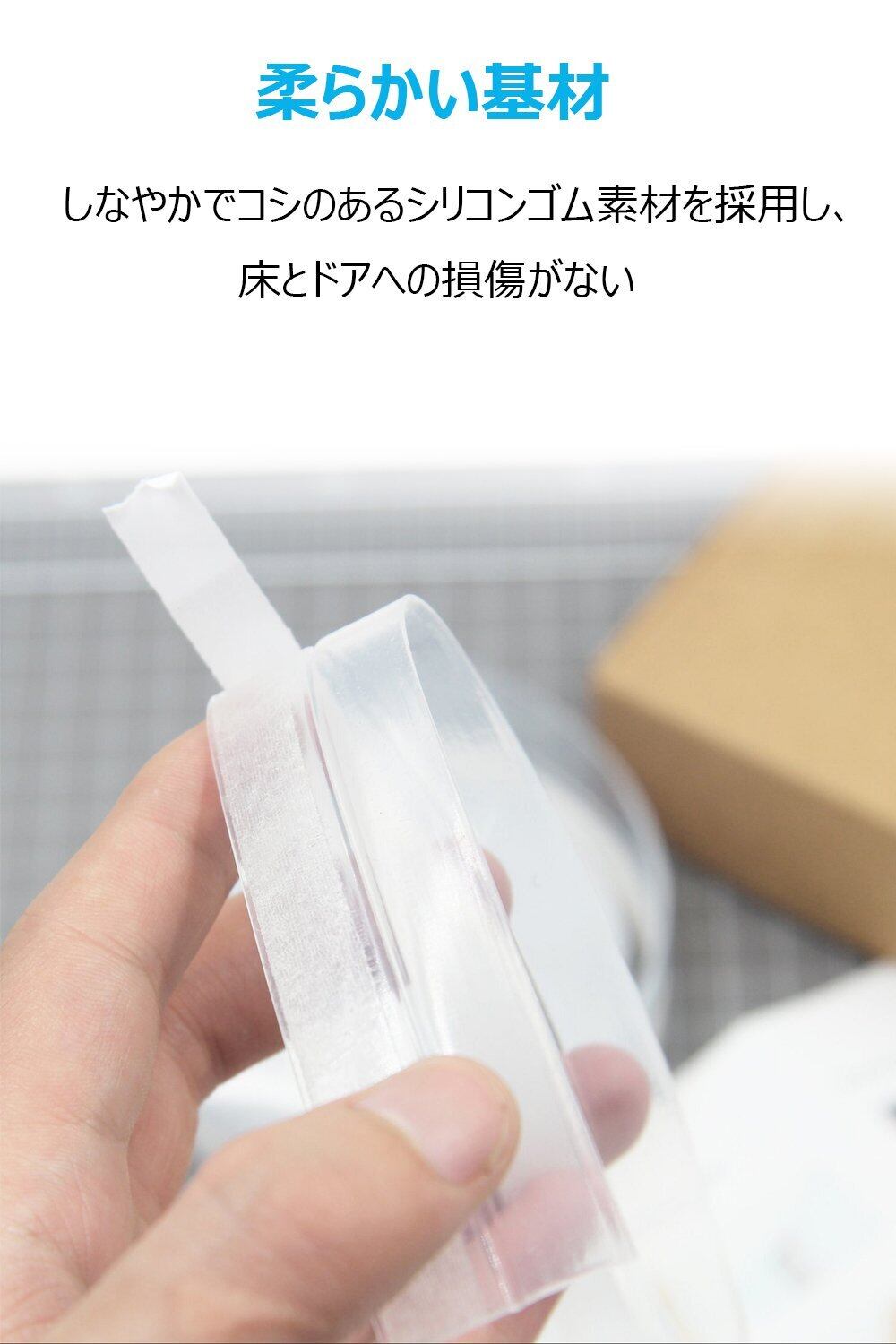 【強力粘着】剥がれにくい進化した粘着テープでしっかり固定。お客様の声を元に粘着力を改善。付属の強力両面テープが、ドアや窓枠にしっかり密着し、長期的な使用にも耐えます。柔らかいシリコン素材がドアや床を傷つけず、開閉もスムーズ。