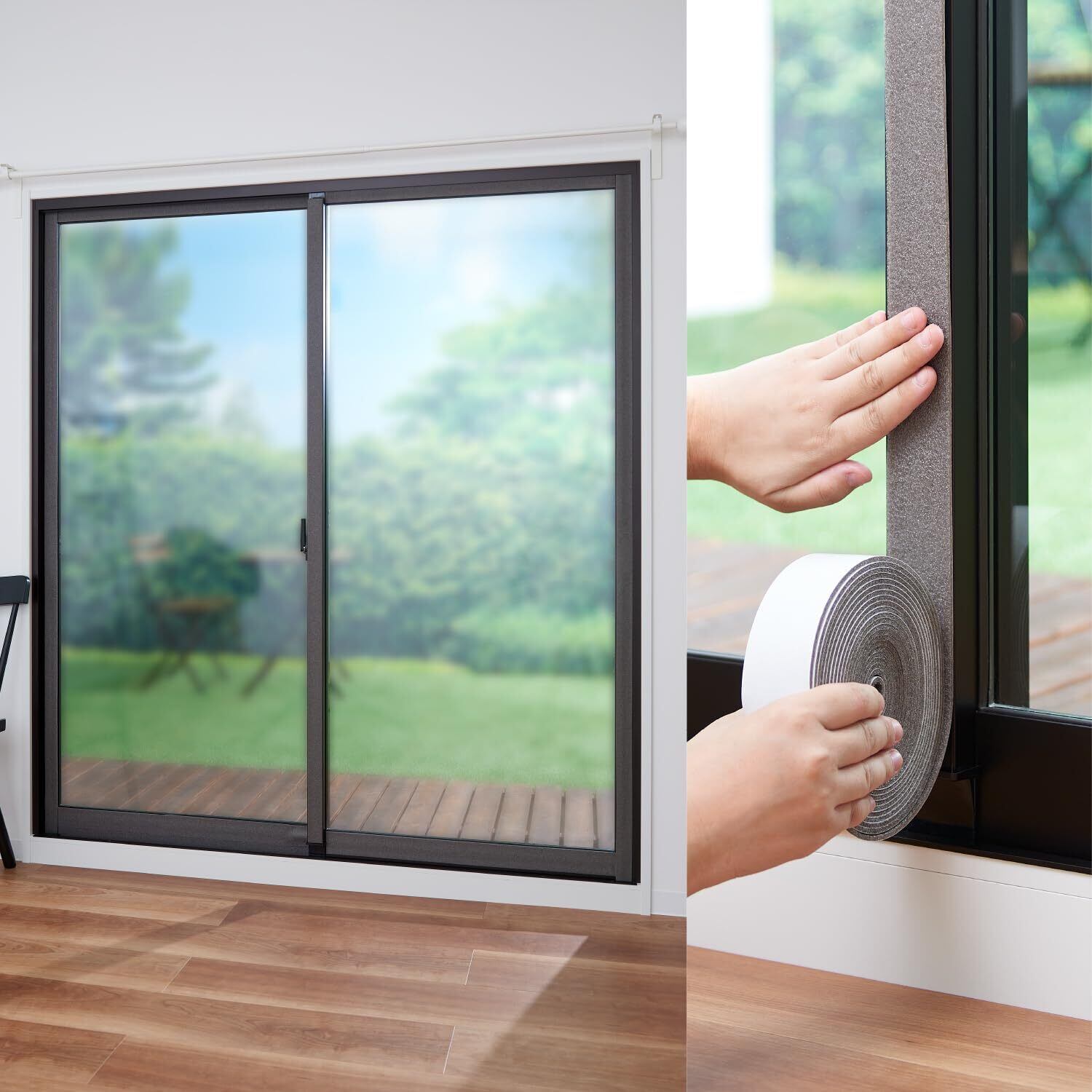 低温(10℃以下)での貼り付けは粘着力が低下し、剥がれる場合がありますのでお避け下さい。アルミサッシ部分をドライヤーなどで温めてから製品を貼り付けてください。