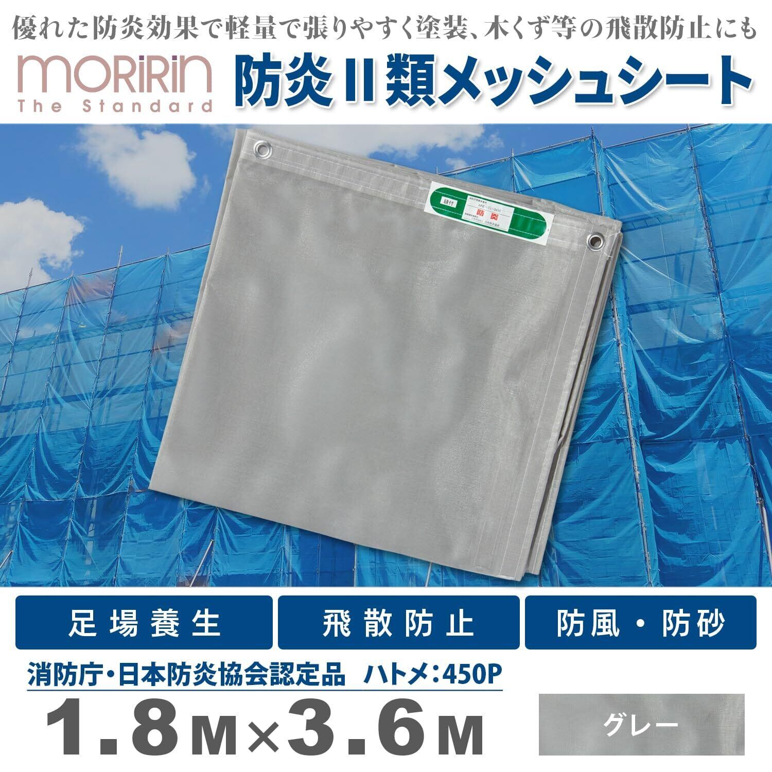 [モリリン] 日本製 防炎 メッシュ シート 1.8×3.6m 難燃 足場養生 飛散防止 防風 防砂 軽量 屋外 工事 建築 国産防炎メッシュシートII類 (MRM-302M) M1836GH グレー