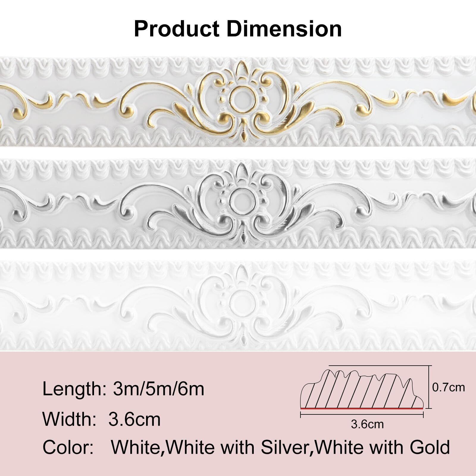 【2025最新】600cm*3.6cm 成形トリム、粘着コーナートリム、フレキシブルモールディングトリム、ミラーエッジ用の 3D ウォールトリム、家具、ドアフレーム、天井、家の装飾(白)