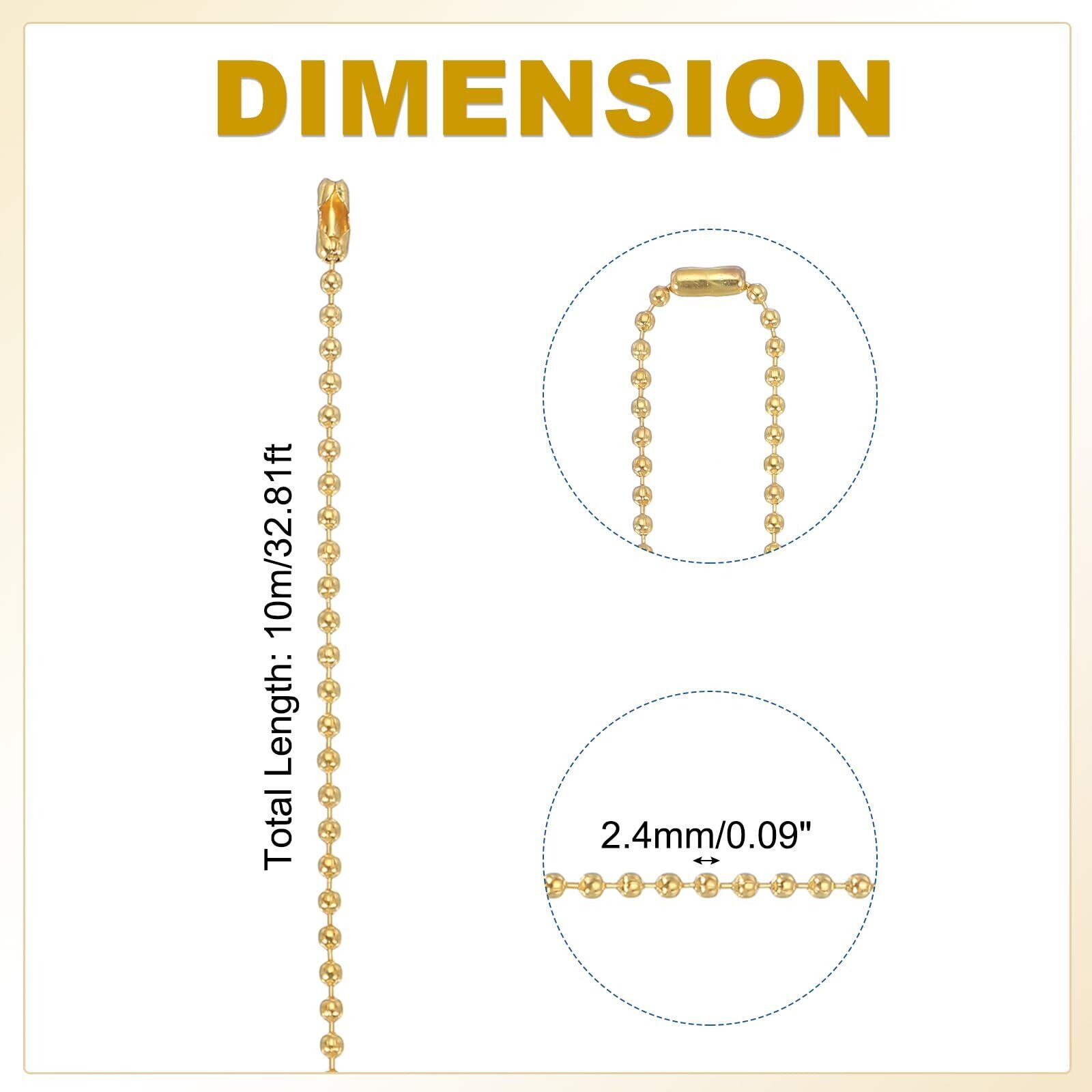 素材:ステンレススチール;カラー:ゴー ルド;サイズ:10m x 2.4mm / 32.81ft x 0.09インチ(縦x横);梱包リスト:1個 x ボールチェーン、20個 x コネクタ