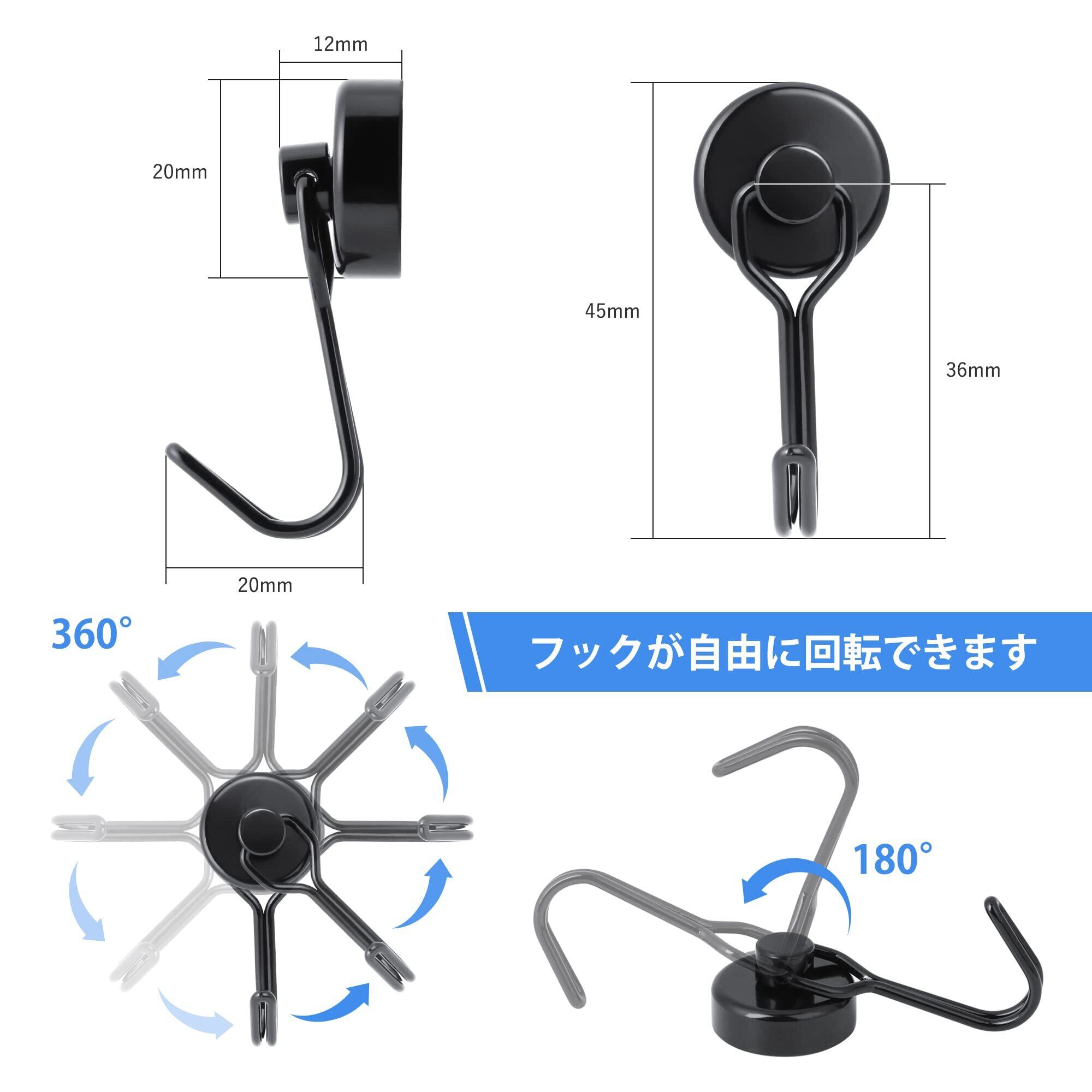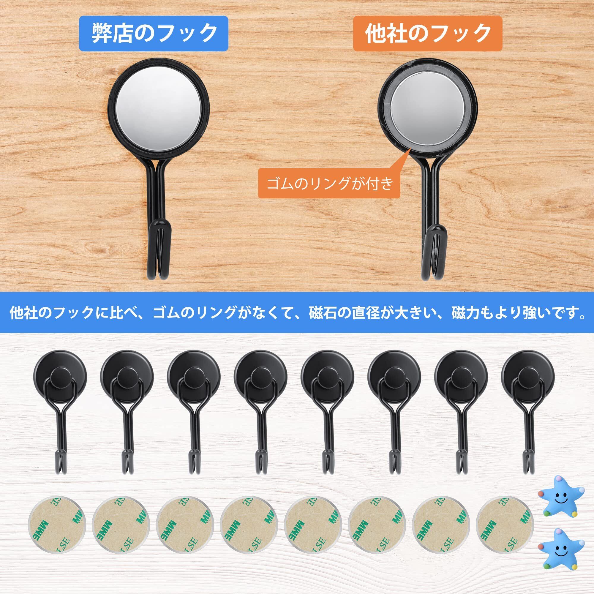 【他社製品と比べ、もっと強力】 画像5が示すように、弊店のフックは他社同類品と違い、マグネットの周りにゴムのリングがなくて、マグネットの面積がより大きいから、吸着力はもっと強いです。