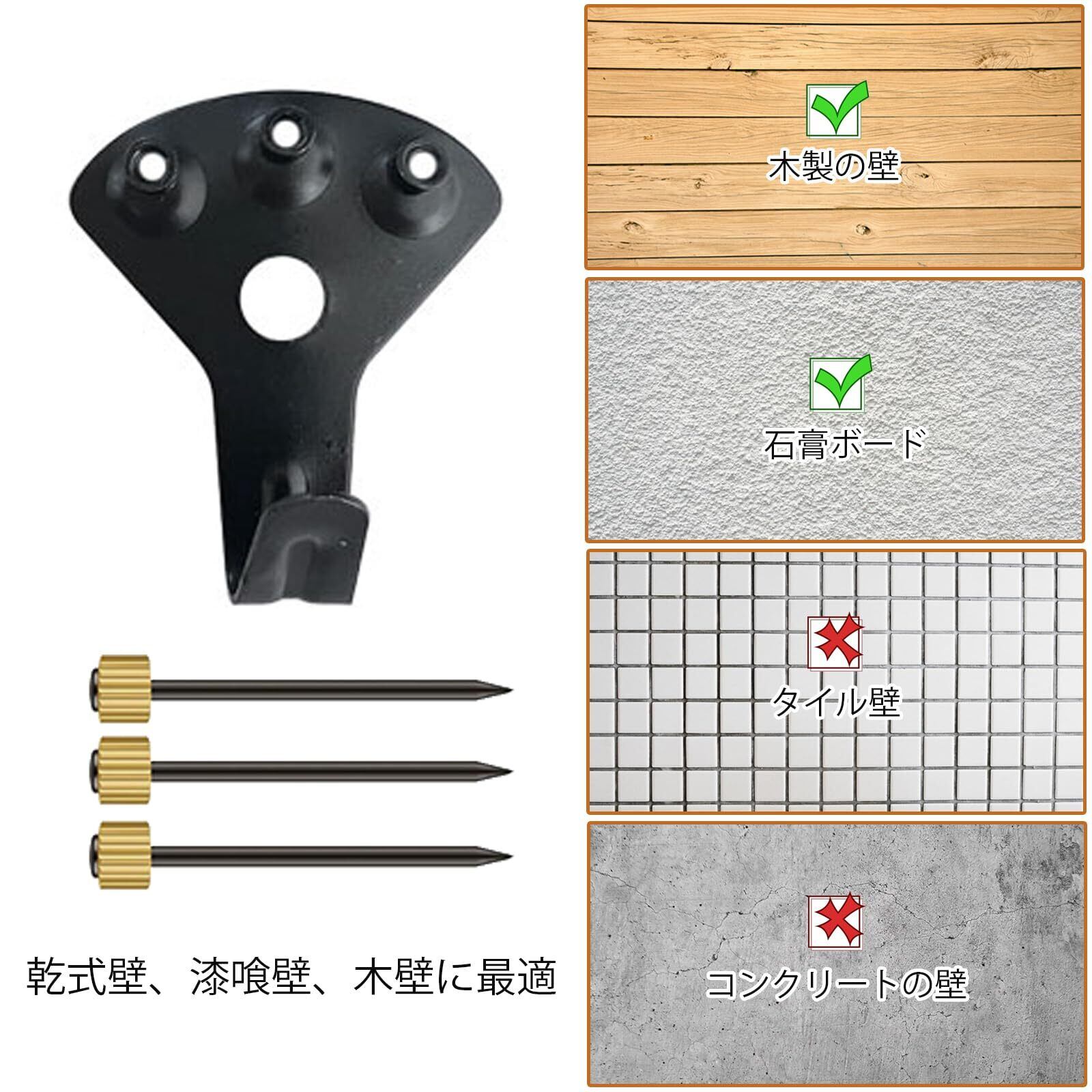 3、多様な用途:家庭やオフィス、キッチン、リビングルーム、バスルームなどで使用可能。額縁、時計、調理器具、タオル、服、帽子、バッグなどの掛けに最適です。
