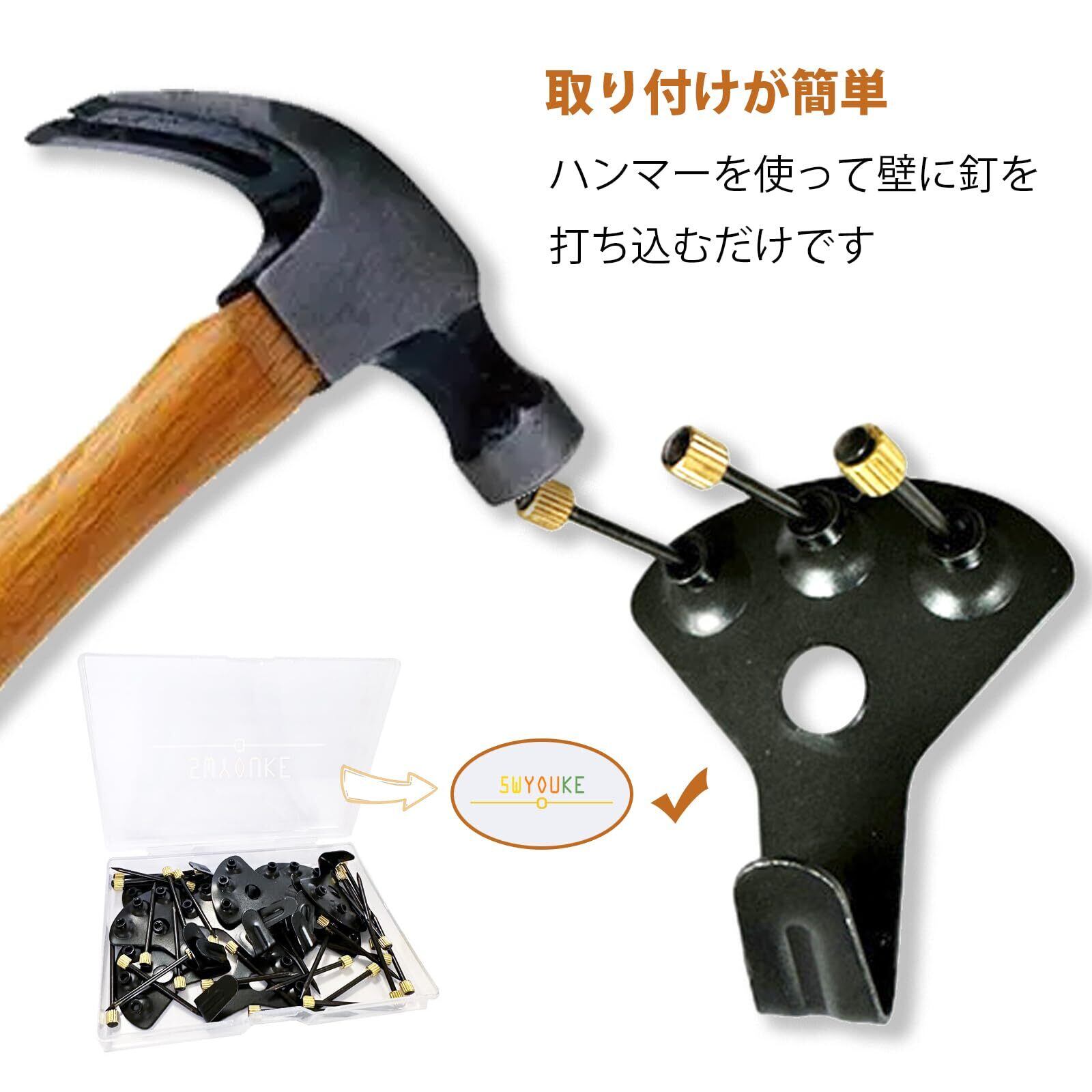 ●取り付けは非常に簡単で、壁によって、手で押したり、ハンマーで叩いたりするだけです。