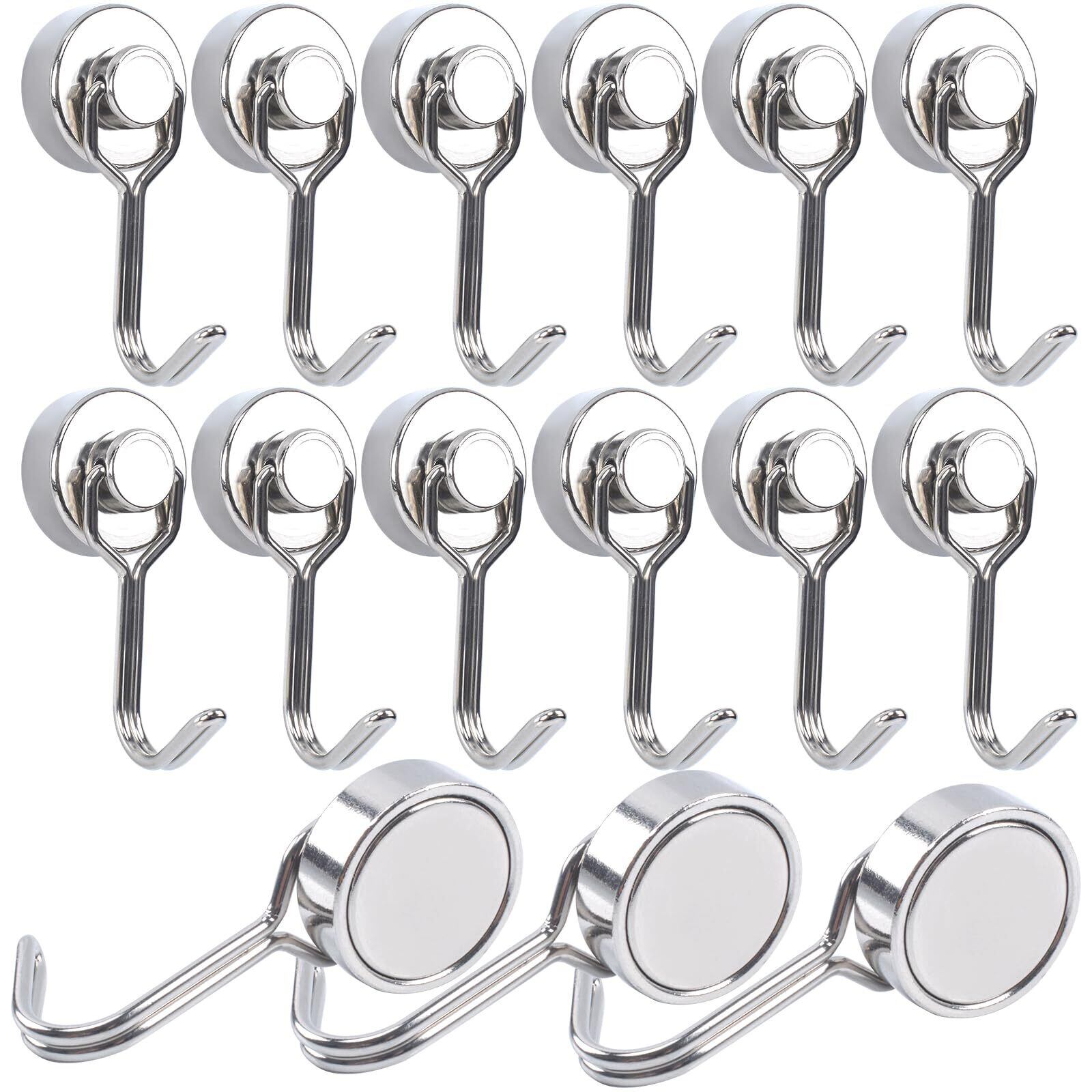 【高品質のマグネットフック】マグネットの表面を電気メッキすることにより、表面は滑らかで光沢があり、防水性と防錆性があり、高温耐性があります (華氏176度までの温度で動作可能)。 ネオジム磁石は長持ちし、時間が経っても弱くなりません。