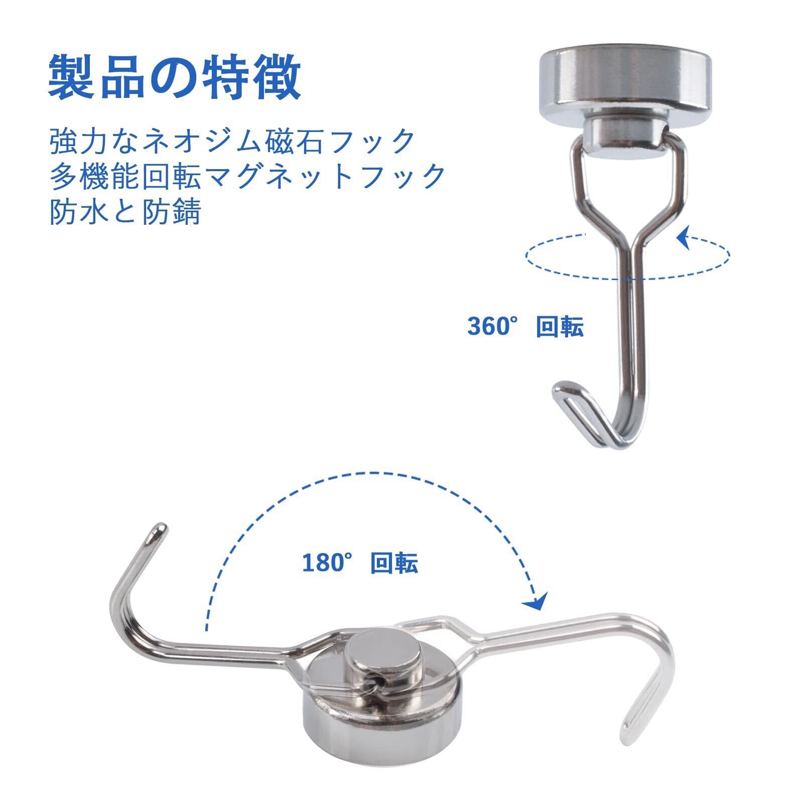 【使いやすい&防錆&防腐食対応】磁石フックは両面テープや穴あけ不要で金属物に直接吸着できます.分解が簡単で鉄製品の表面に自由に使用できます.フックは180度回転して最大限に活用できます.マグネットフックの引っ張り力。表面に電気泳動プロセスをすることで、長時間の使用でも、錆、腐食等を防止しながら、滑らか表面及び美しい明るさを持ちます。