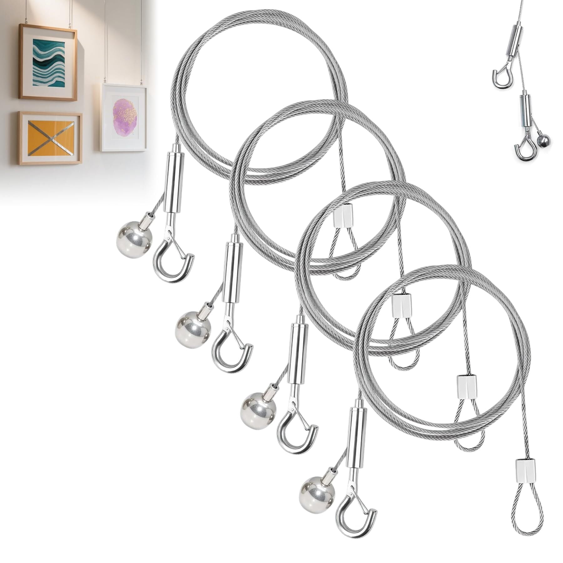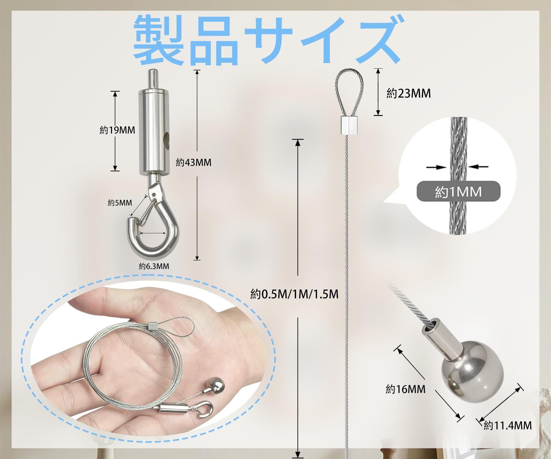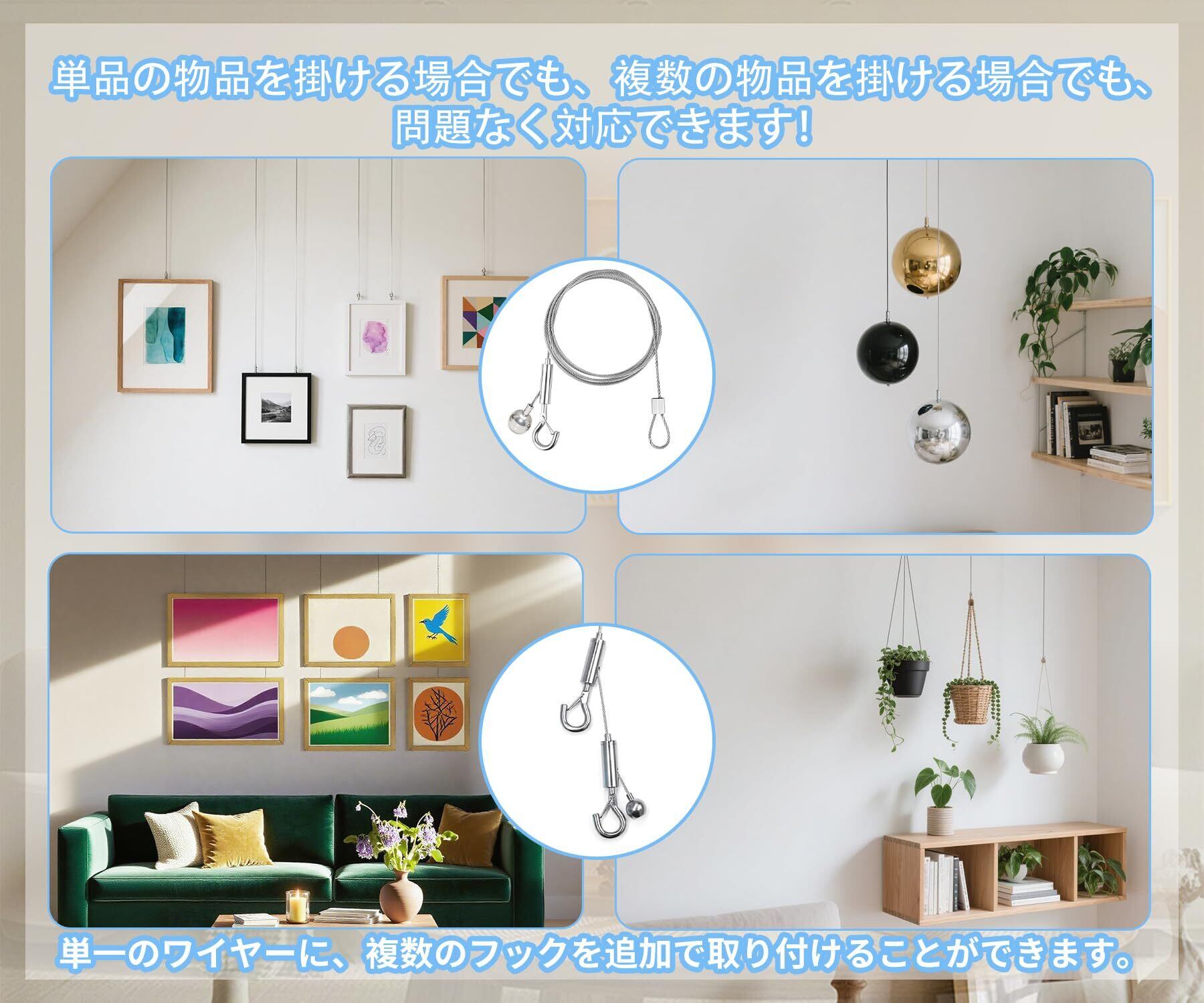 【フック追加自在】独特の設計により、ワイヤーに追加のステンレスフックを簡単に取り付けることができ、同じワイヤーで複数の作品を展示でき、追加購入の必要はありません。
