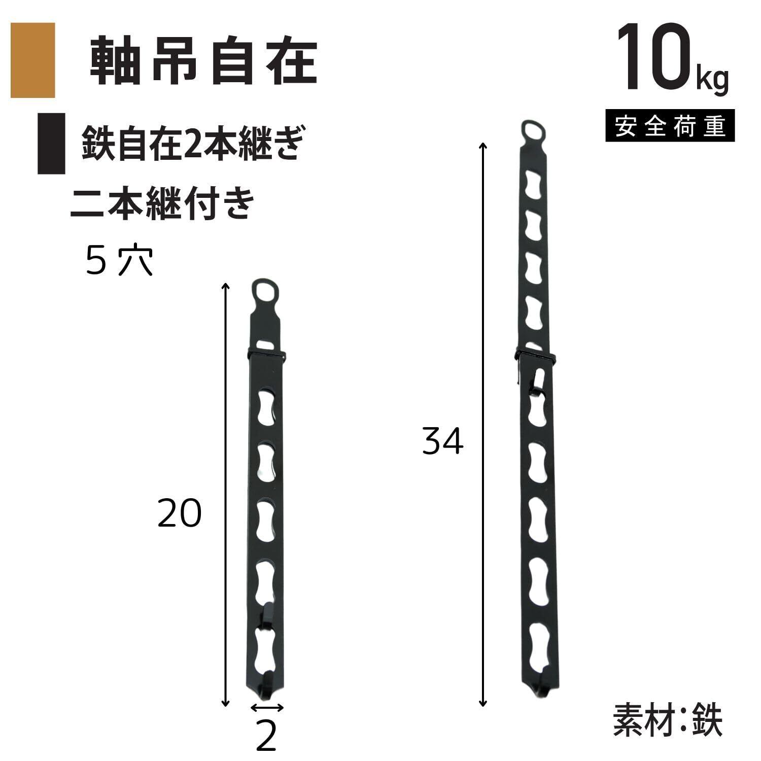 福井金属工芸(Fukuikinzokukogei) 掛け軸を吊る為の金具 掛軸の高さ調節が出来る 軸吊自在 鉄自在2本継 5穴 200~340mm 1236