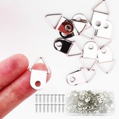 【パッケージ内容】 絵画用フレーム用吊り金具セット×100(ネジ付属) 寸法:21mm×10.4mm、穴径約3mm、色(黒)
