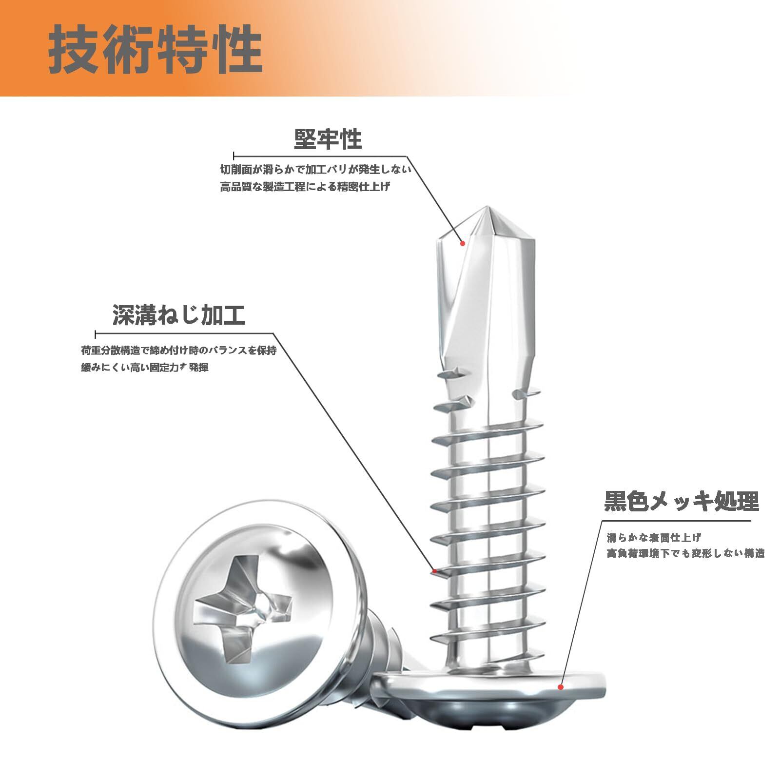 セルフドリル設計で作業効率アップ:先端の特殊なドリル形状により、下穴を開ける手間が不要。金属、木材、プラスチックなどさまざまな素材に直接貫通可能で、作業時間を大幅に短縮できます。