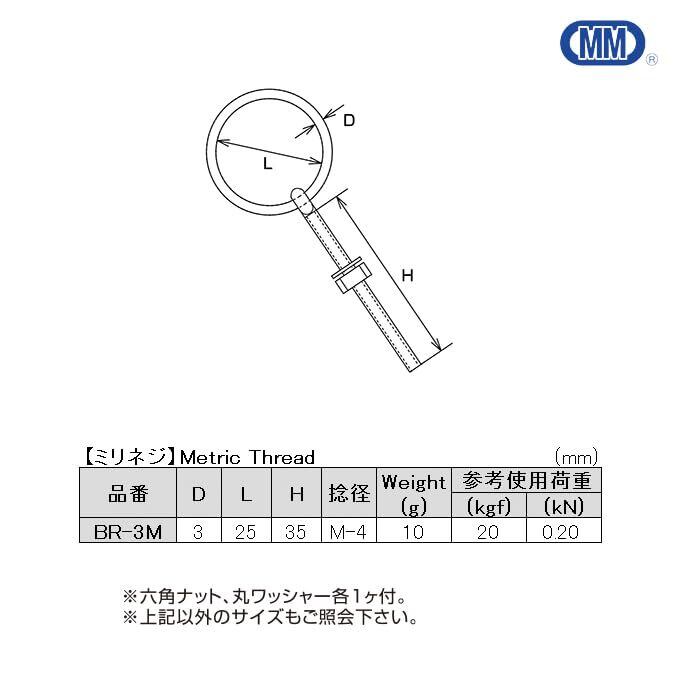 MM 水本機械製作所 SUS304 ステンレス 丸カンボルト(ミリネジ) BR-3M