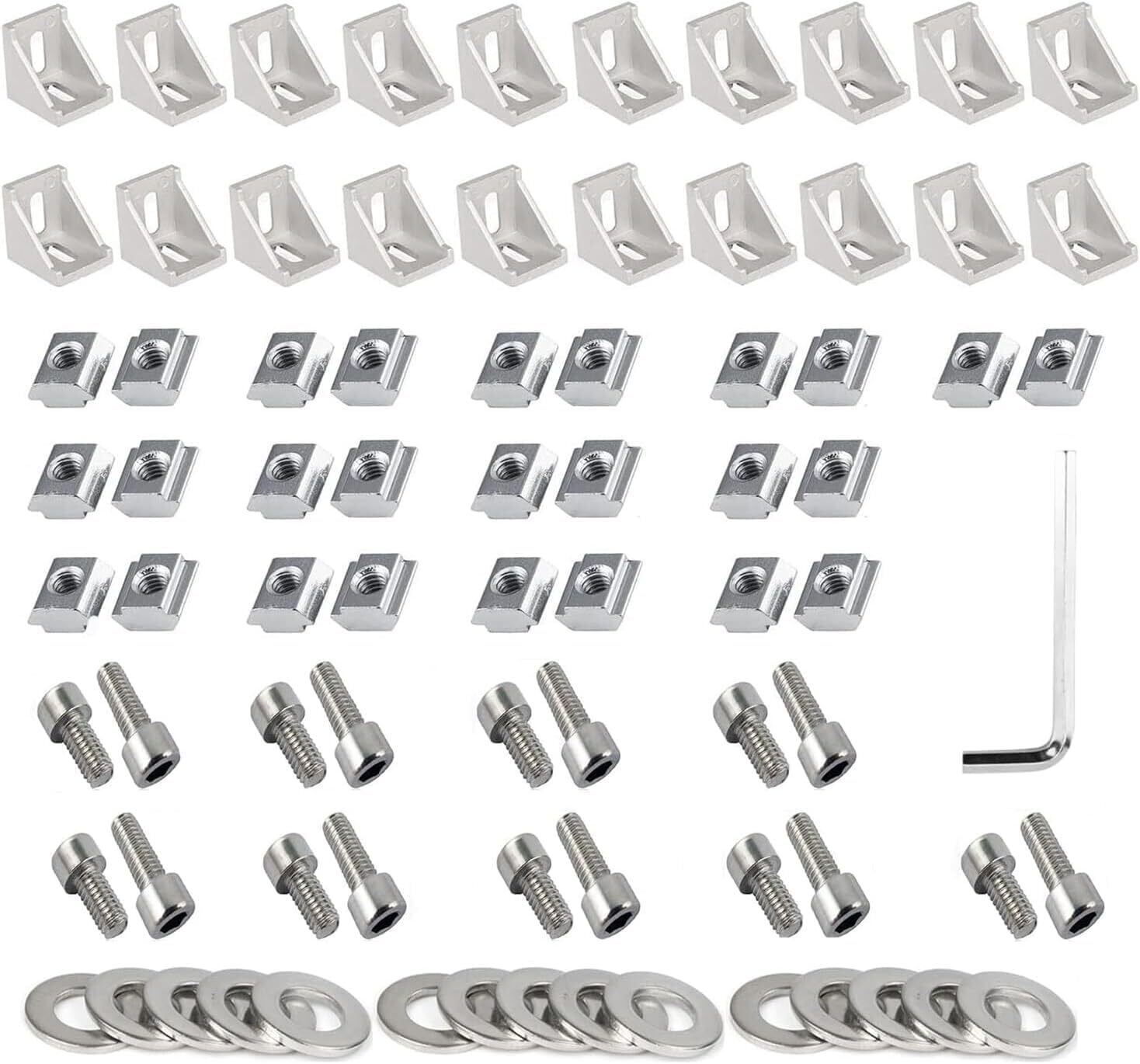 2020シリーズ アルミプロファイルコネクターセット 20個 コーナーブラケット 40個 M5 Tスロットナット 40個 M5フラットワッシャ 40個 M5x8mm 六角ソケットキャップスクリューボルト アルミプロファイルアクセサリー (2020)