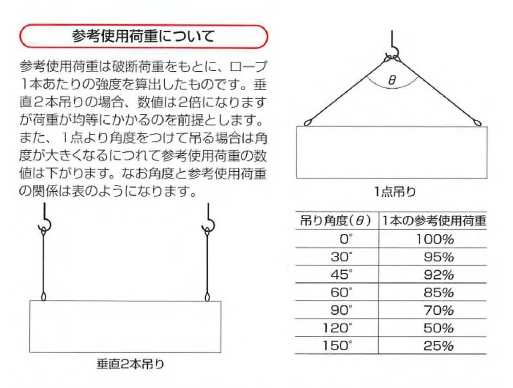 適合ワイヤーロープ径/参考使用荷重:1.5mm/25.0kg・2.0mm/45.0kg