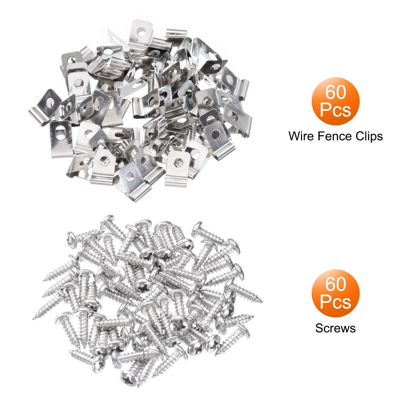 uxcell 60個 ワイヤーフェンスクリップ0.12"ステンレススチールフェンスワイヤークランプ農業用フェンス取り付けクリップ60個 ネジ付き12-16ゲージワイヤーを木製金属またはビニールフェンスに取り付けるため