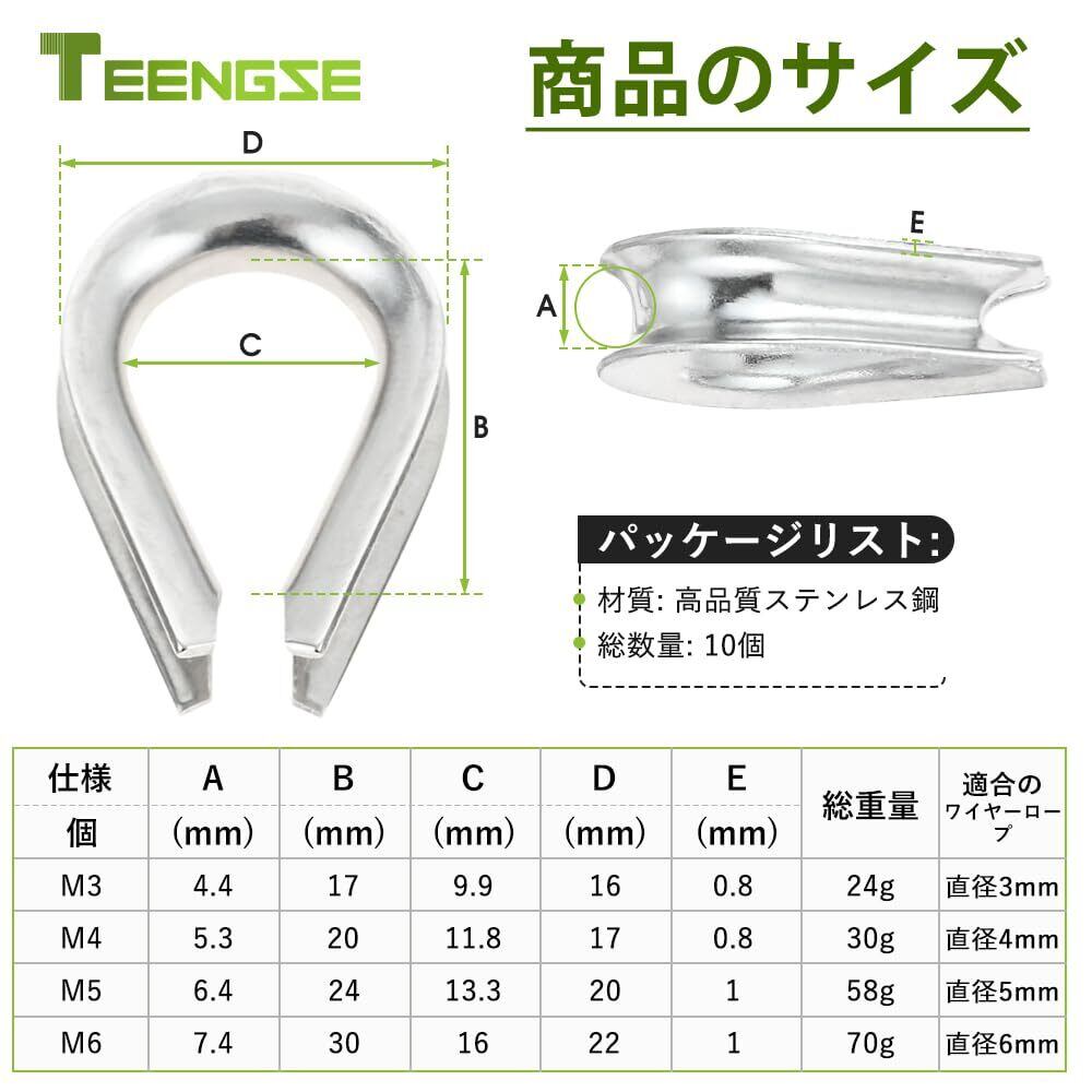 【新着商品】10個入り ワイヤーロープ シンブル ステンレスシンブル ワイヤーロープ指ぬき M5(5mm) TEENGSE シンブル 304ステンレス製 ミニ 直径5mmワイヤーロープに適合 耐久性耐摩耗性 ワイヤーロープ、ケーブル、セーリング、船舶デッキロープ、トレーラー、索具、スイング、フィットネス機器、固定荷重、吊り下げバナー、旗などのケーブルに使用 端末処理