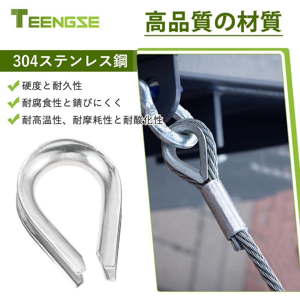 【高品質】: このワイヤーロープ シンブルは、高品質の304ステンレス鋼製で、高強度、耐腐食性、耐摩耗性、耐高温性に優れています。また、変形しにくく、錆びにくく、長期的な使用に耐えることができます。耐久性: 濡れた環境や外部からの腐食要因に対しても非常に耐久性があり、屋内外問わず使用できます。