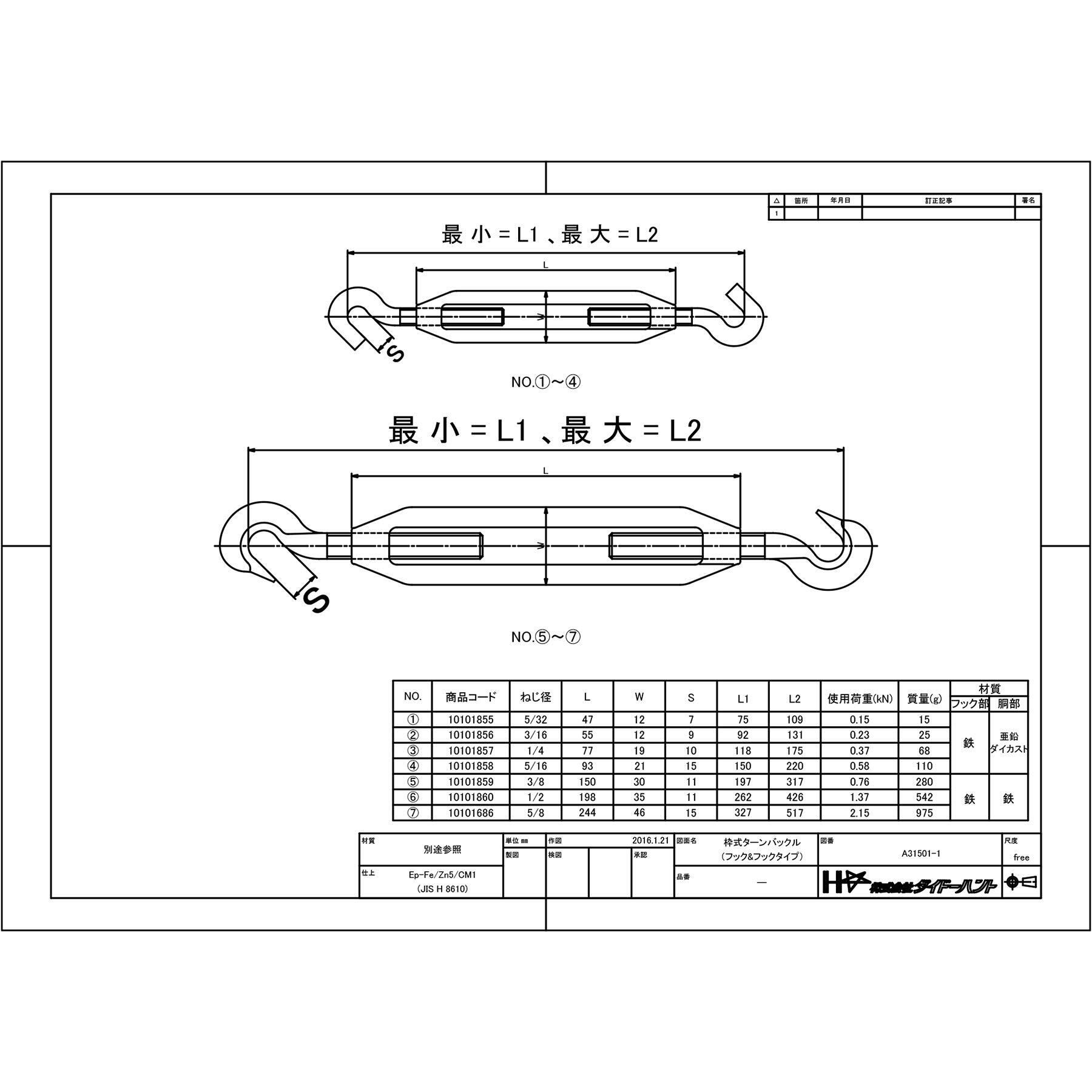 ダイドーハント (DAIDOHANT) ユニクロ ターンバックル 両フック [W3/8] (A)197x(B)317x(C)11mm [鉄] (1個) 10101859