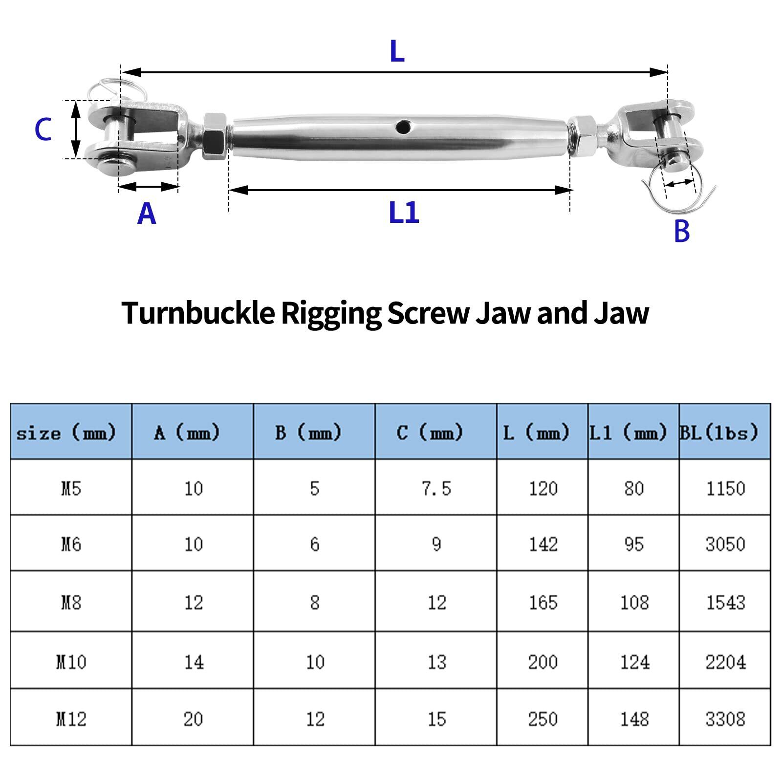 【新着商品】M12 ターンバックル ステンレススチール ジョーとジョー ターンバックル リギングスクリュー クローズドボディ ターンバックル ジョー マリングレード用 1個パック