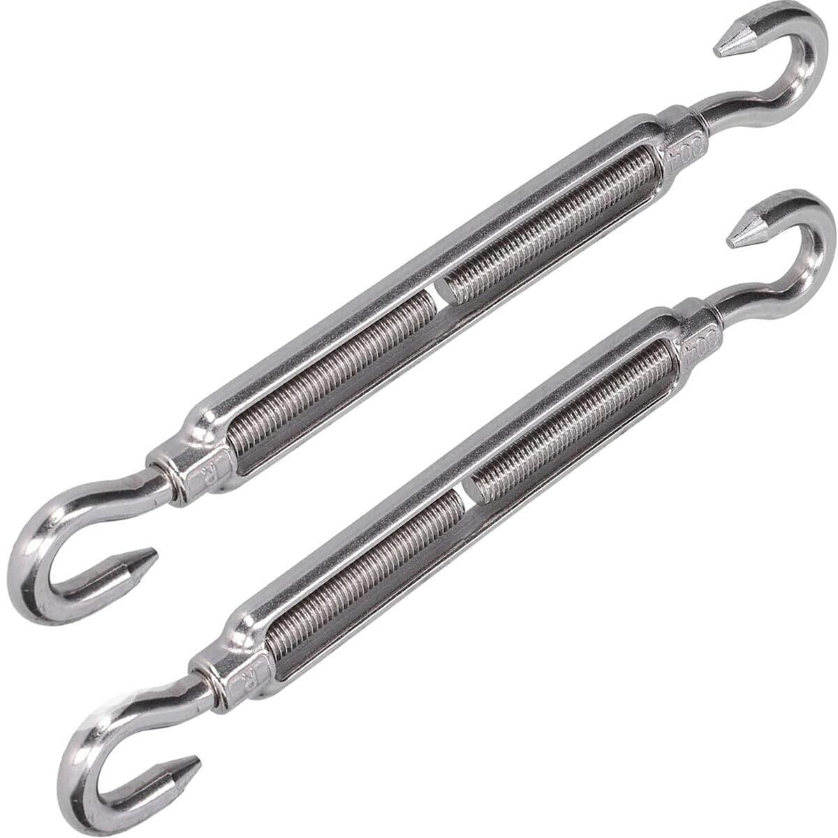 【人気商品】304ステンレススチール フック&フック ターンバックル ワイヤーロープ テンションターンバックル 調節可能 M10スレッド直径 高耐久 フックからフックターンバックル 調節可能なワイヤーロープテンショナー (2個)