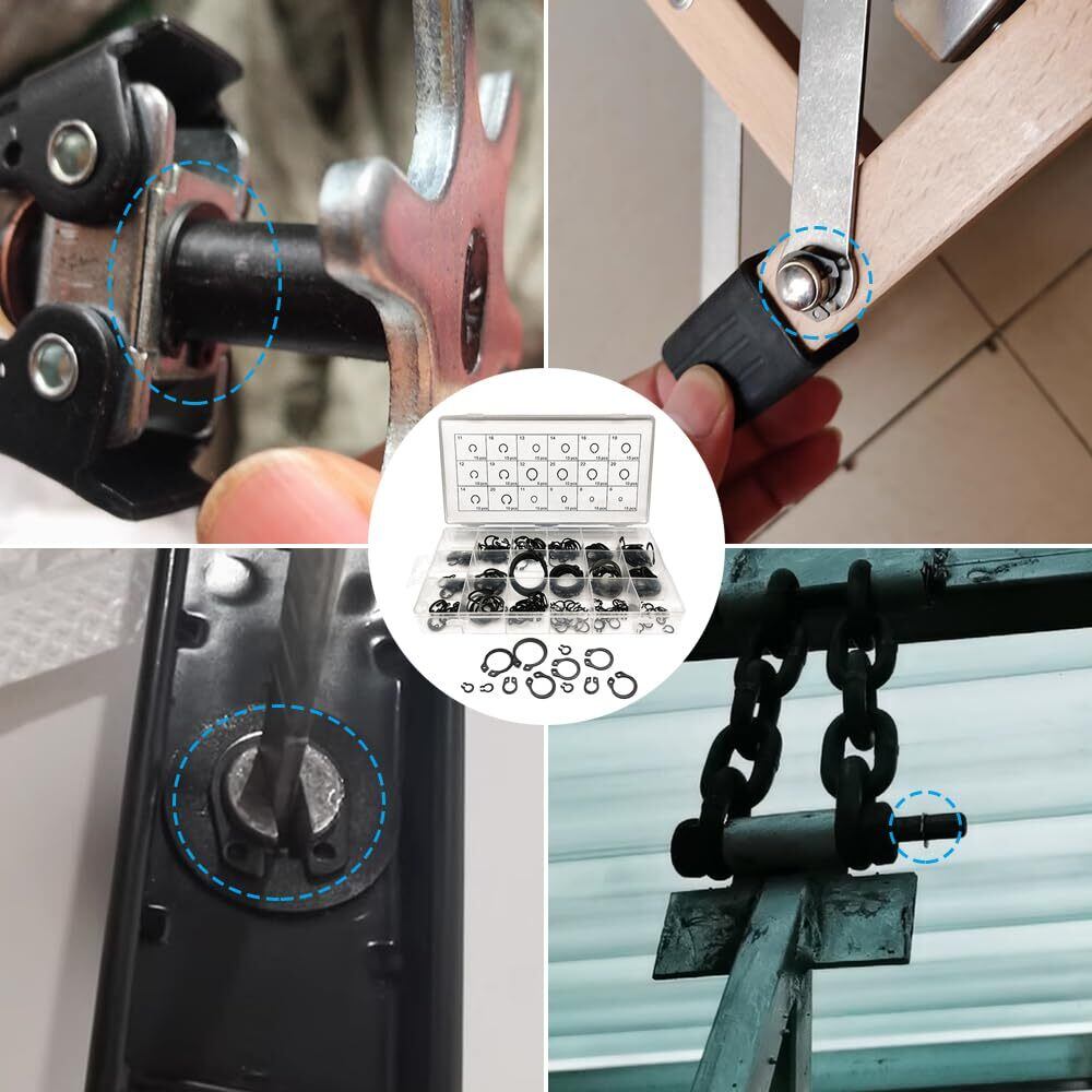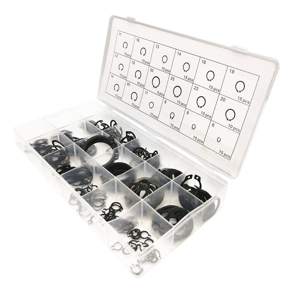 【豊富なセット内容】約225個のC型スナップリングがセットに含まれており、各サイズが複数個ずつ入っているため、あらゆる用途に適したサイズを見つけることができます。