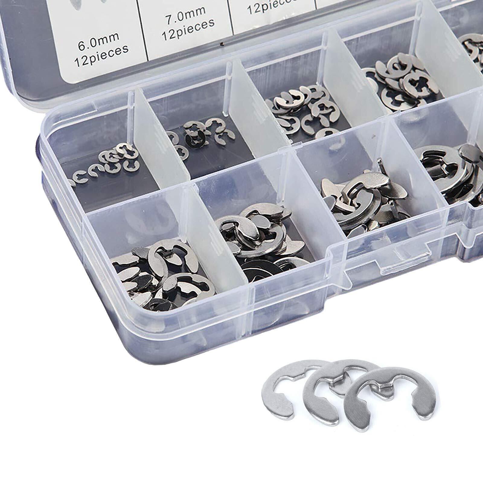 YFFSFDC Eクリップ 120個セット収納ケース付き ステンレス鋼製 E型スナップリング 補修 部品固定用 スナップリング E型止め輪 耐久性 耐油性