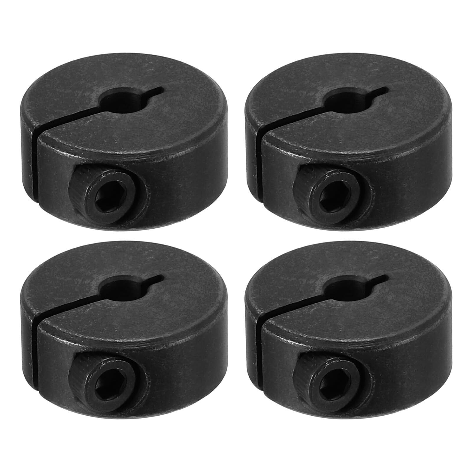 カラー:黒;素材:45#炭素鋼;外径:18mm/0.7";幅:8mm/0.3";適用シャフト径:4mm/5/32";パッケージリスト:4 x 分割軸カラー、4 x セットスクリュー