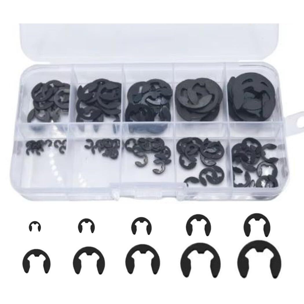 E型スナップリング マンガン鋼 120個セット M1.5~M10 収納ケース付き E型止め輪 部品固定 軸用