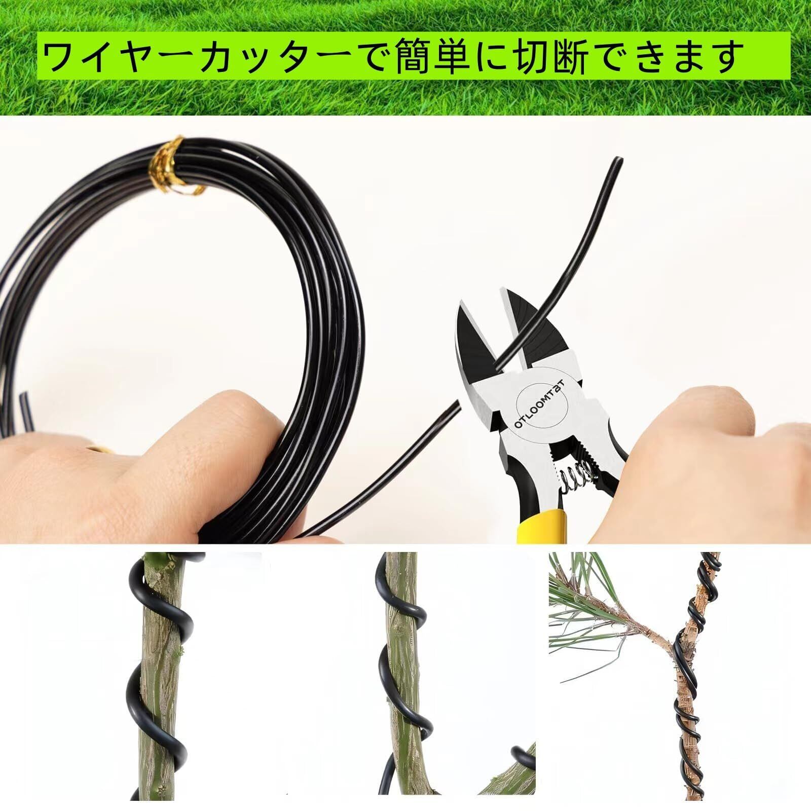 【素材】:この盆栽用ワイヤーは、優れた延性を持つアルミニウム素材で作られています。光、高温多湿などの気象条件でも耐腐食性と耐摩耗性に優れているため、耐久性に優れています。