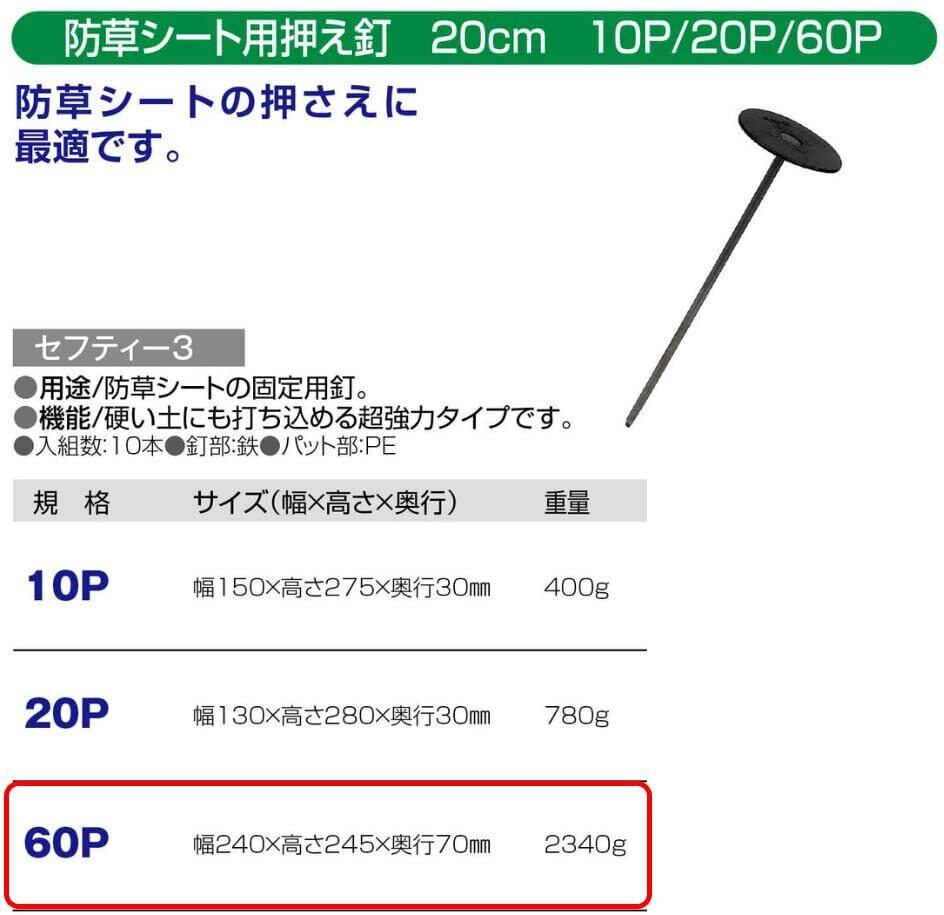 【限定セール】セフティー3(Safety-3) 防草シート用押え釘 釘の頭が飛び出ないフラット構造 20cm 日本製 60個入