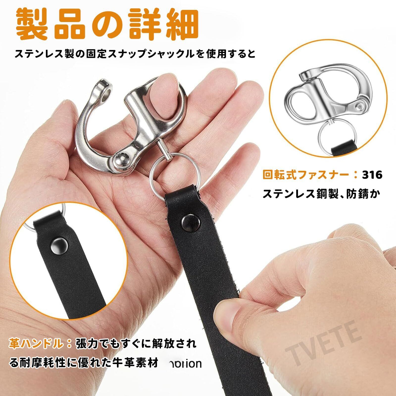 【特別価格】TVETEシャックル 【2個】スナップシャックル 固定スナップシャックル マリンボートリギング ステンレ 消防士用レザーハンドル付きマスククイックリリースシャックル 用 登山/ハイキング/キャンプ用 高強度 耐食 携帯便利 クイックリリース装置